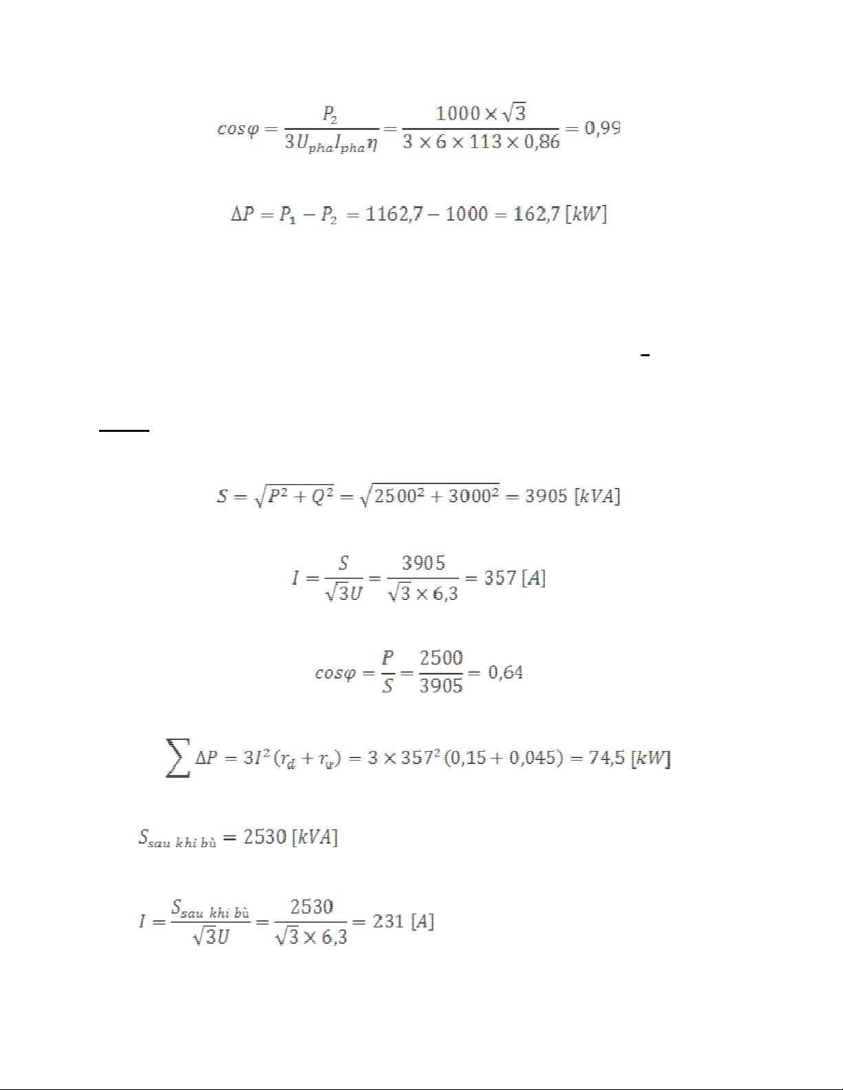 Dòng điện tương ứng sau khi bù là: Tổng tổn hao khi bù: