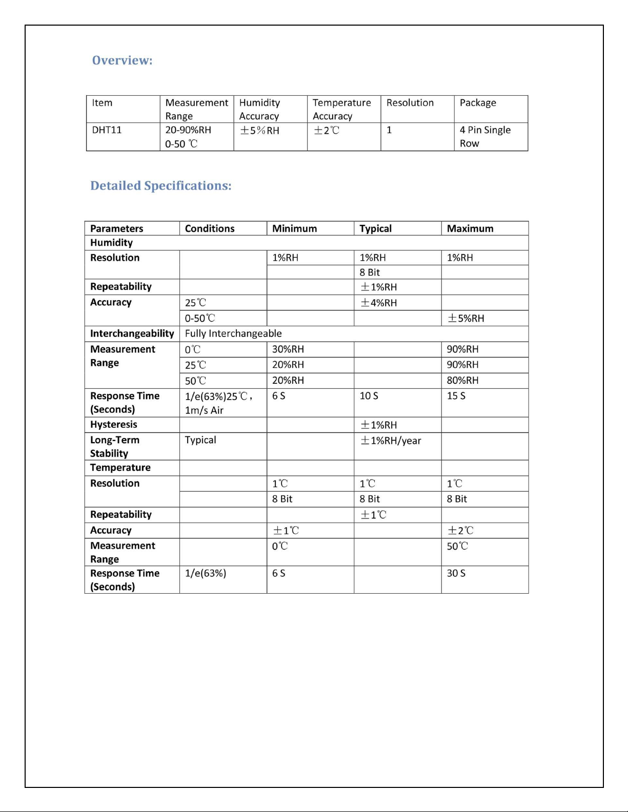 • Cảm biến nhiệt độ, độ ẩm DHT11