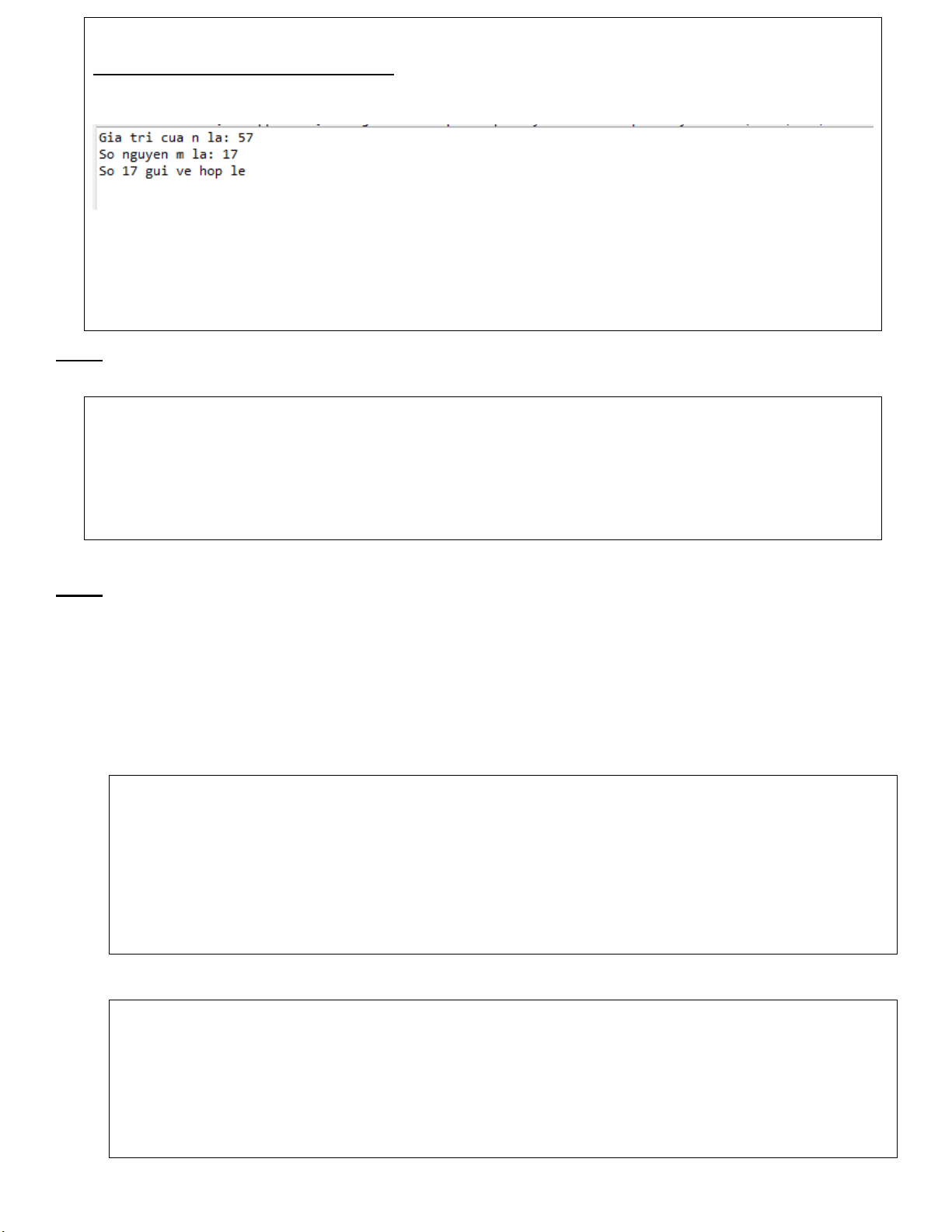 đến mt % n có số nào trùng nhau hay không. Nếu có thì in ra “số m gửi về không hợp lệ”