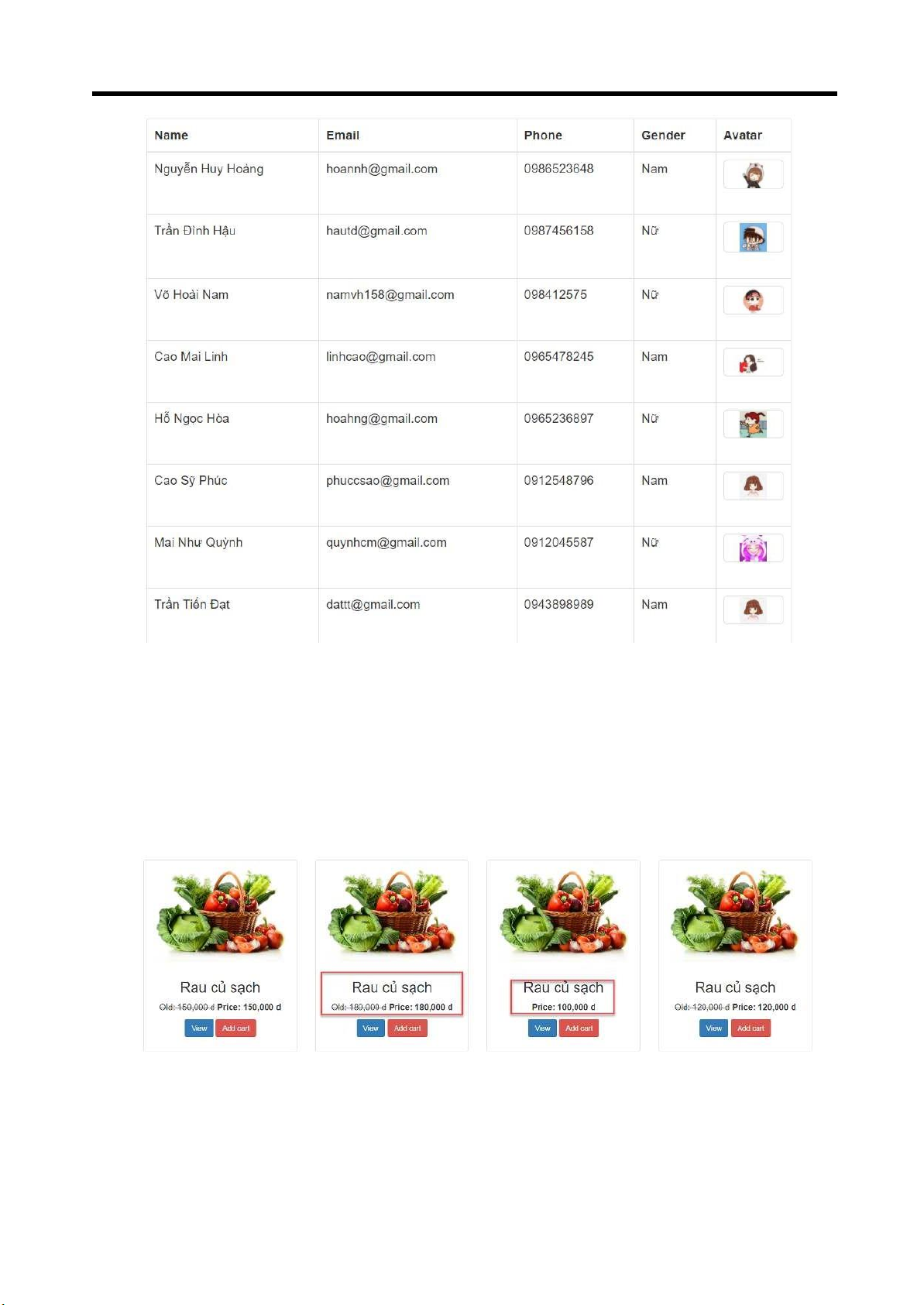 phone, gender, avatar. Sau đó in mảng dưới dạng bảng gồm các cột Name, Email,