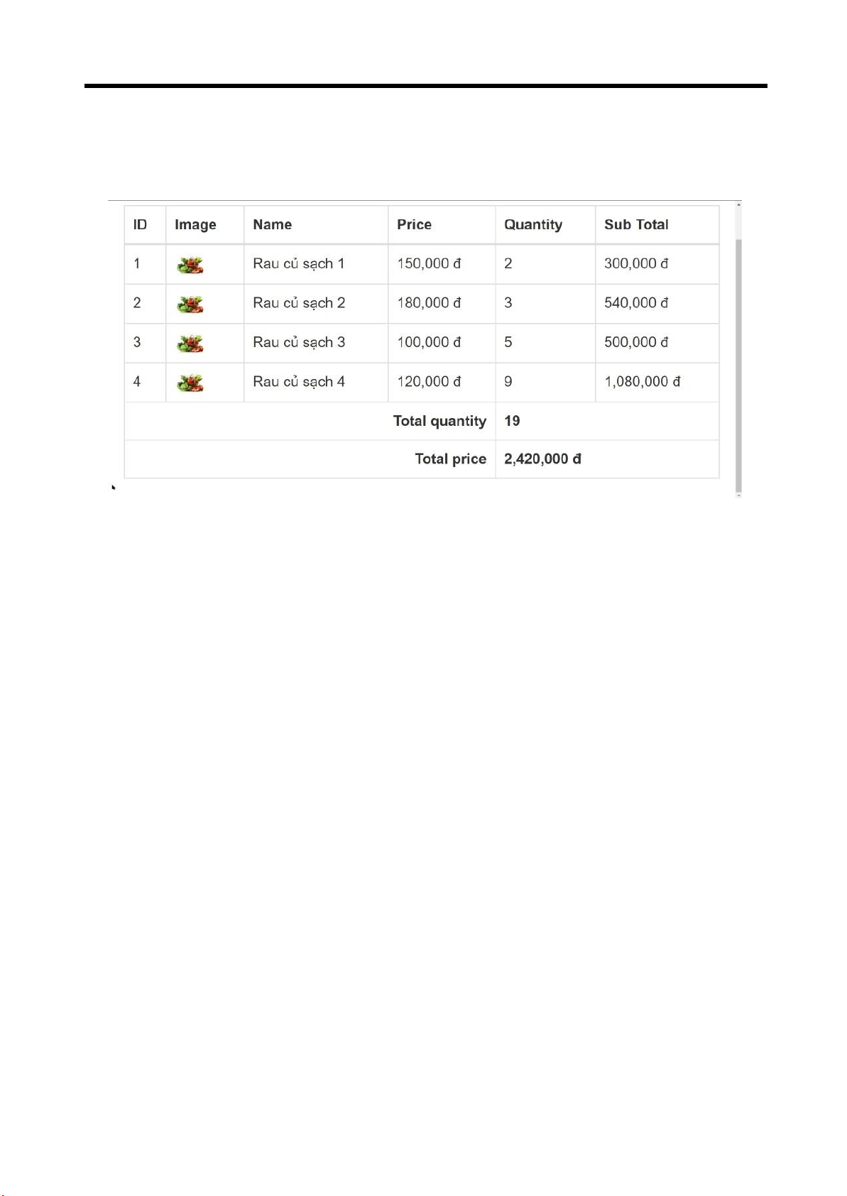 giỏ hàng dưới dạng bảng như sau (Chú ý: Trong bảng sẽ có cột thành