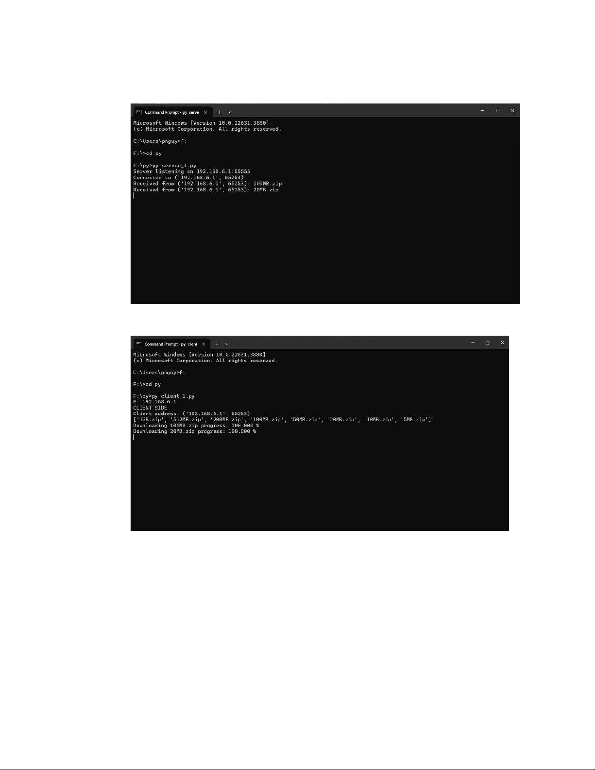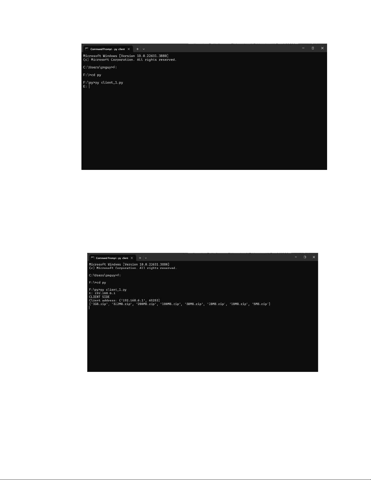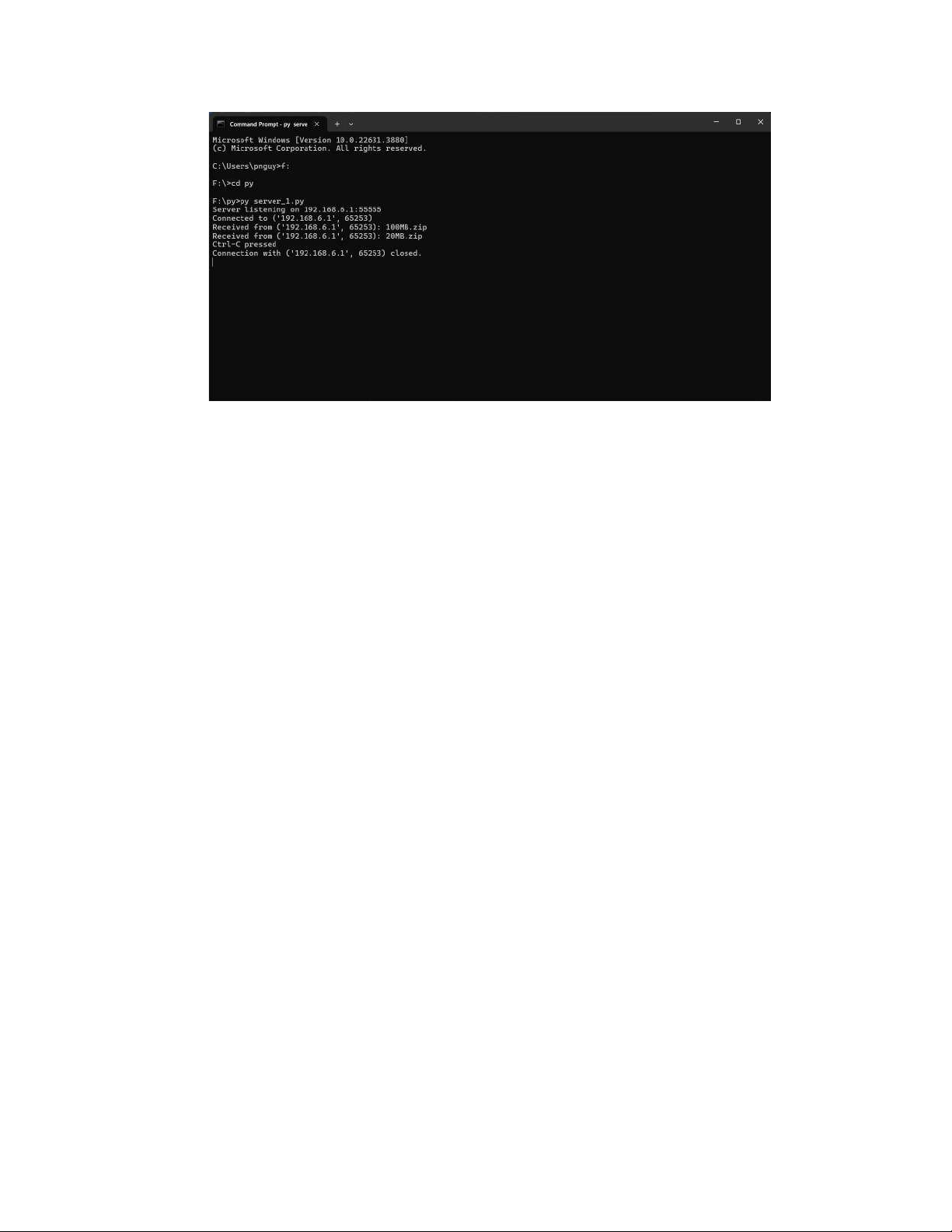 • Chạy tệp mã nguồn Python ở máy thứ hai bằng dòng lệnh cmd để khởi