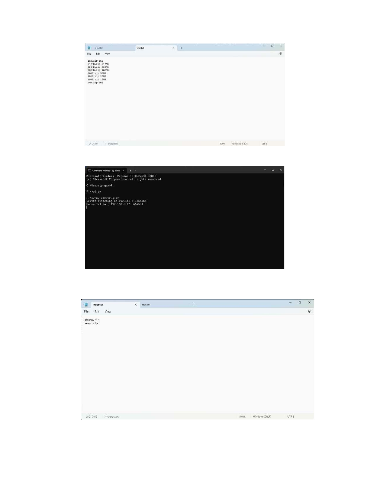• Trong “input.txt”, nhập các file mà client muốn tải từ server.