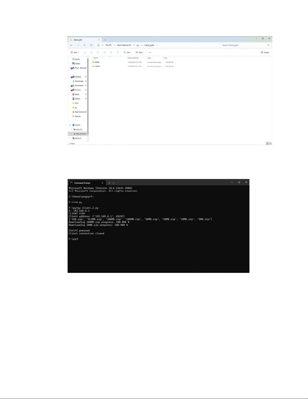 Client nhận file đã tải và lưu vào folder “Client_path”.