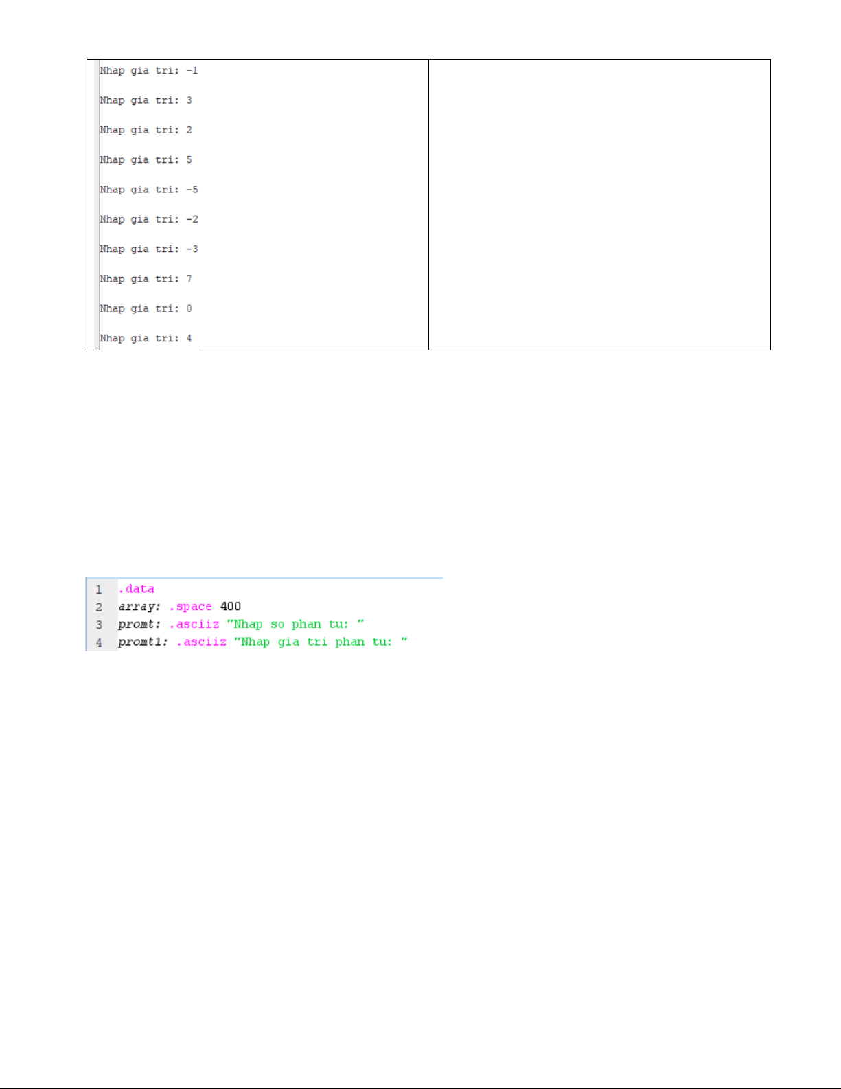 Bắt đầu .text sẽ là phần nhập số lượng phần tử và giá trị các phần tử của mảng