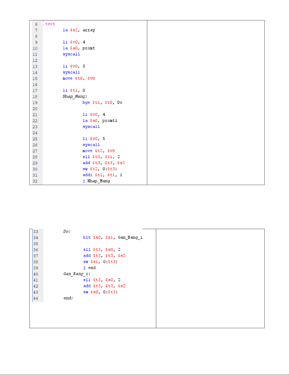 của mảng số nguyên A được lưu trong thanh ghi $s3. if (i < j) A[i] = i else A[i] = j; Khai báo: - 400 space cho mảng array