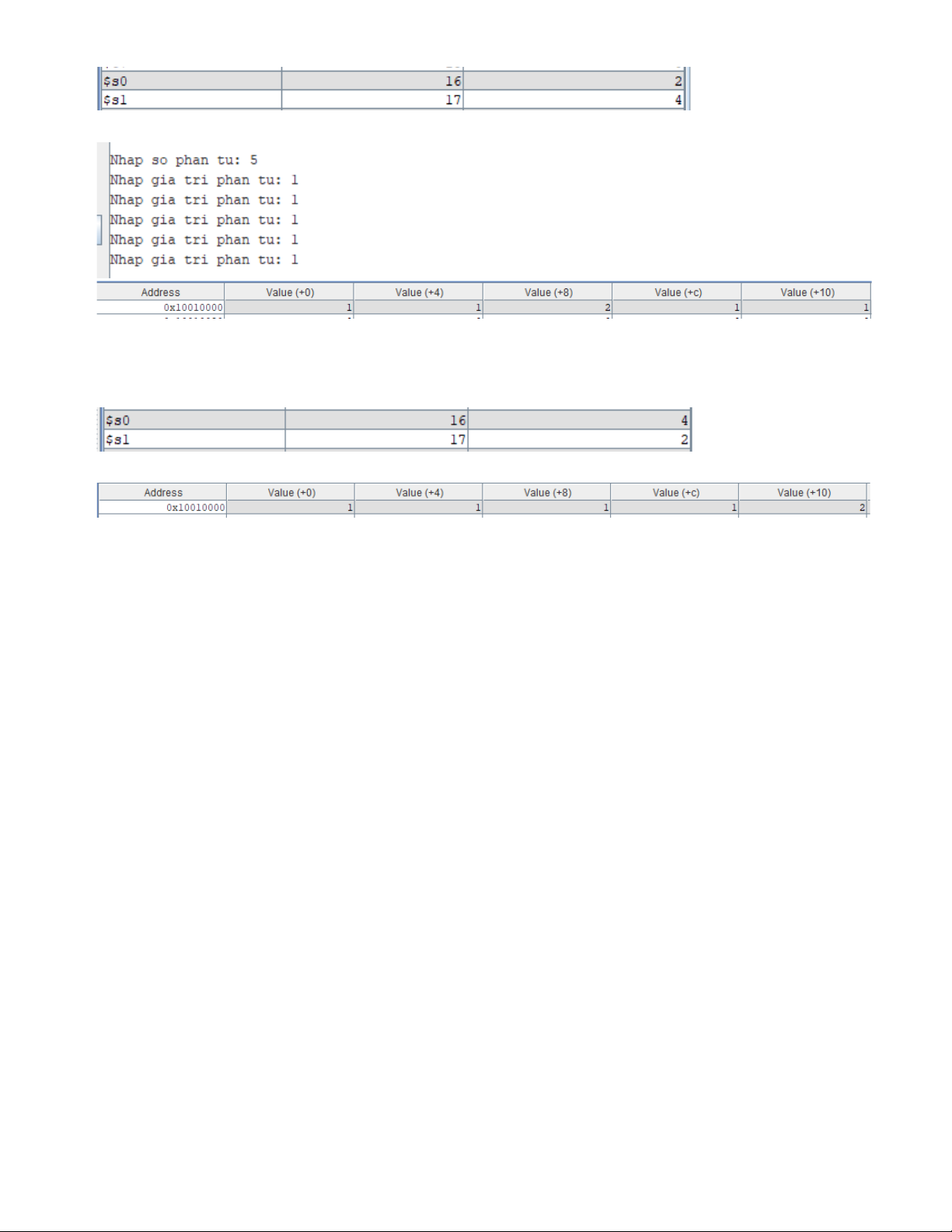 ✓ In ra cửa sổ I/O của MARS tất cả các phần tử của mảng array1