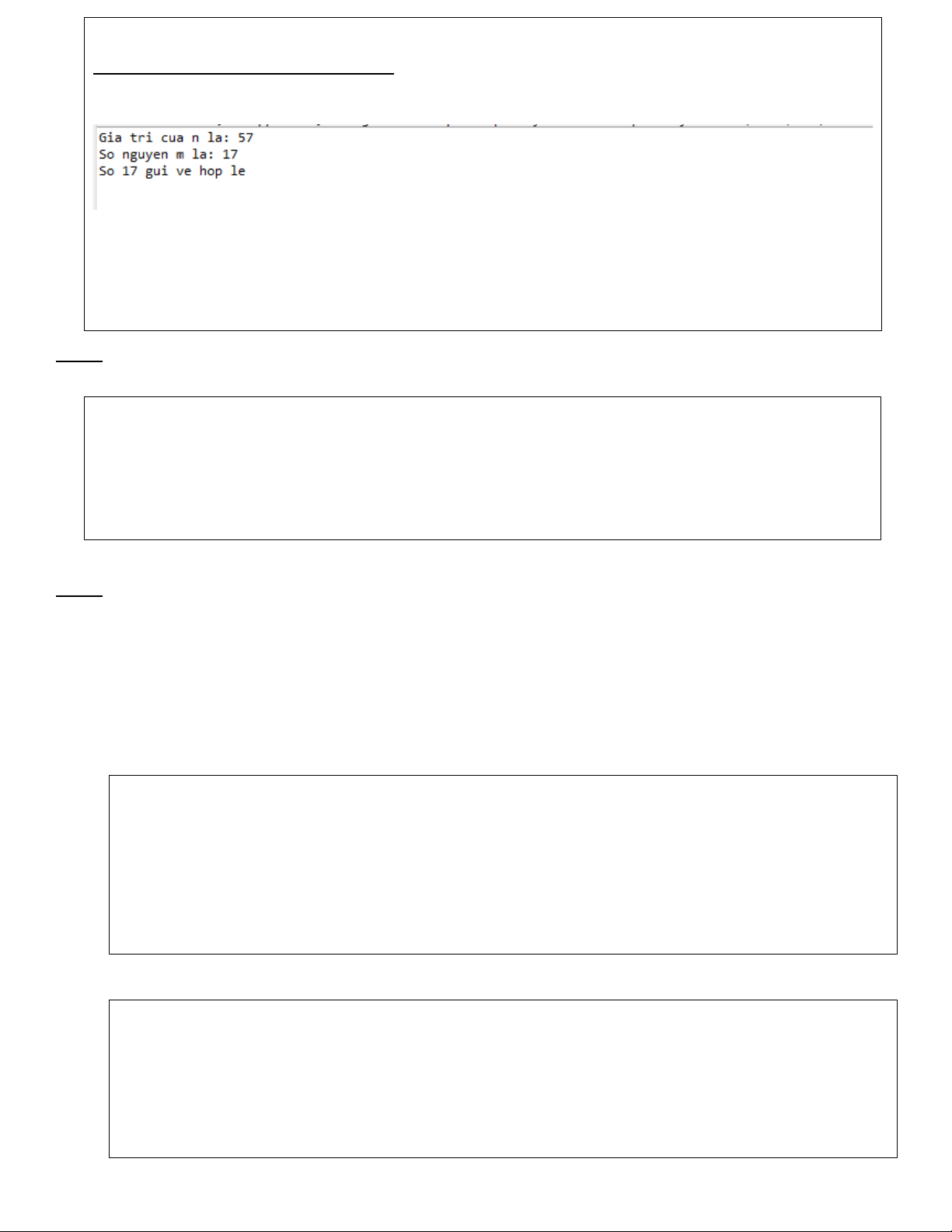 đến mt % n có số nào trùng nhau hay không. Nếu có thì in ra “số m gửi về không hợp lệ”