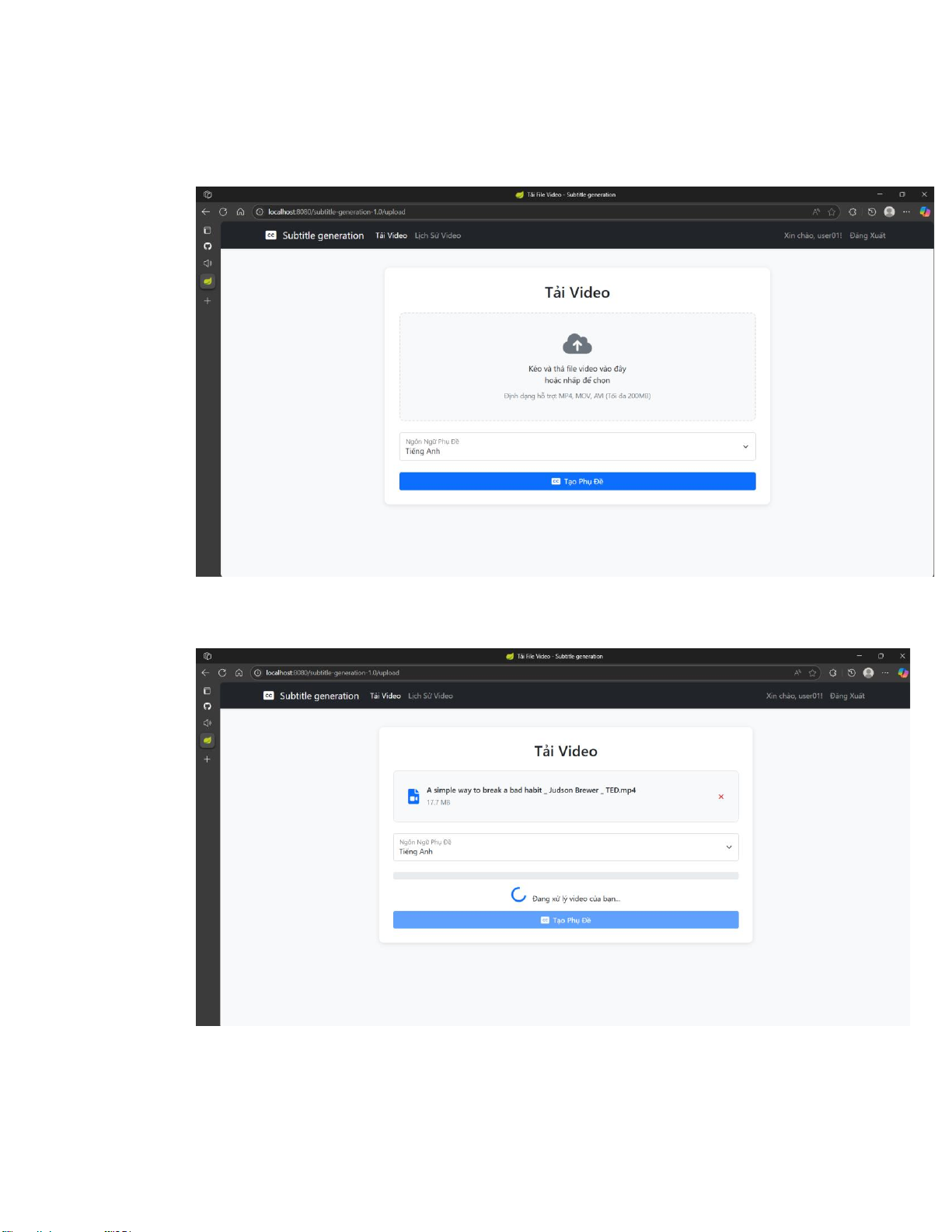 Có thể tải video .mp4 sau khi đã thêm phụ đề tự động. (Xử lý dưới nền)