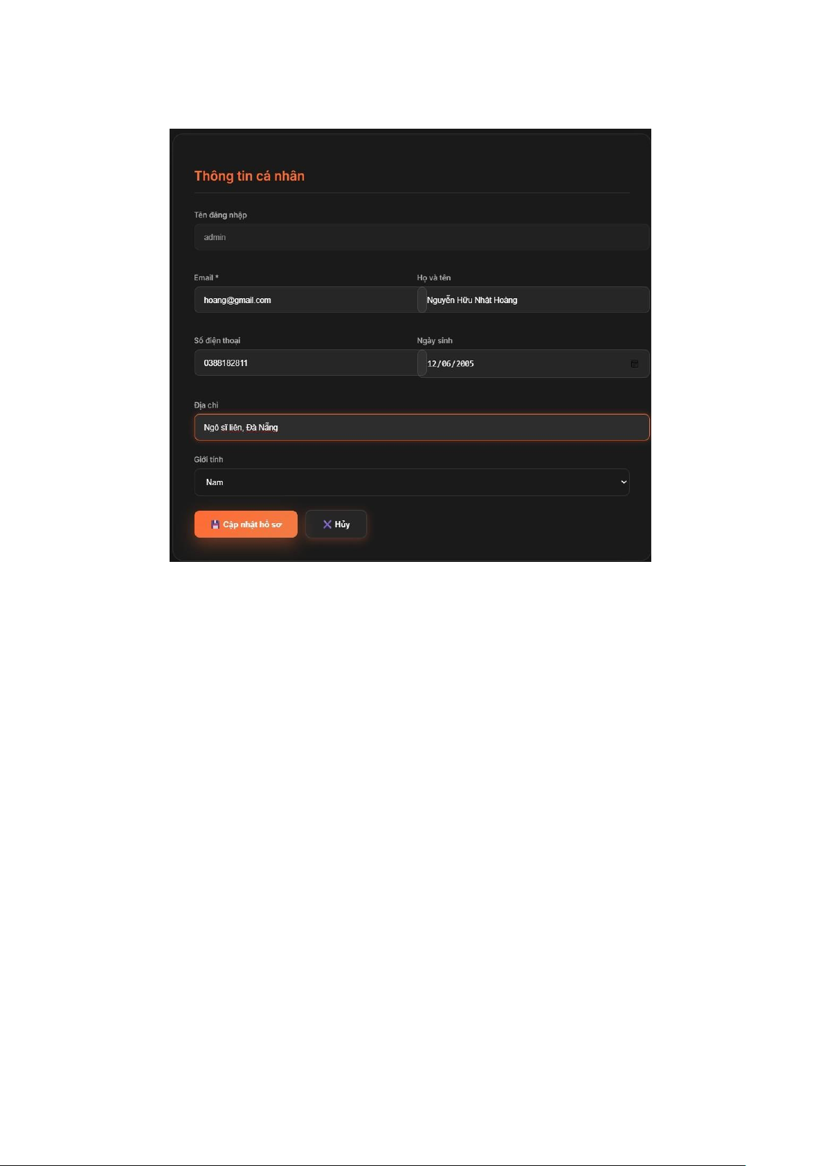 ❖ Quản lý thông tin cá nhân: Người dùng có thể quản lý thông tin cá nhân của tài