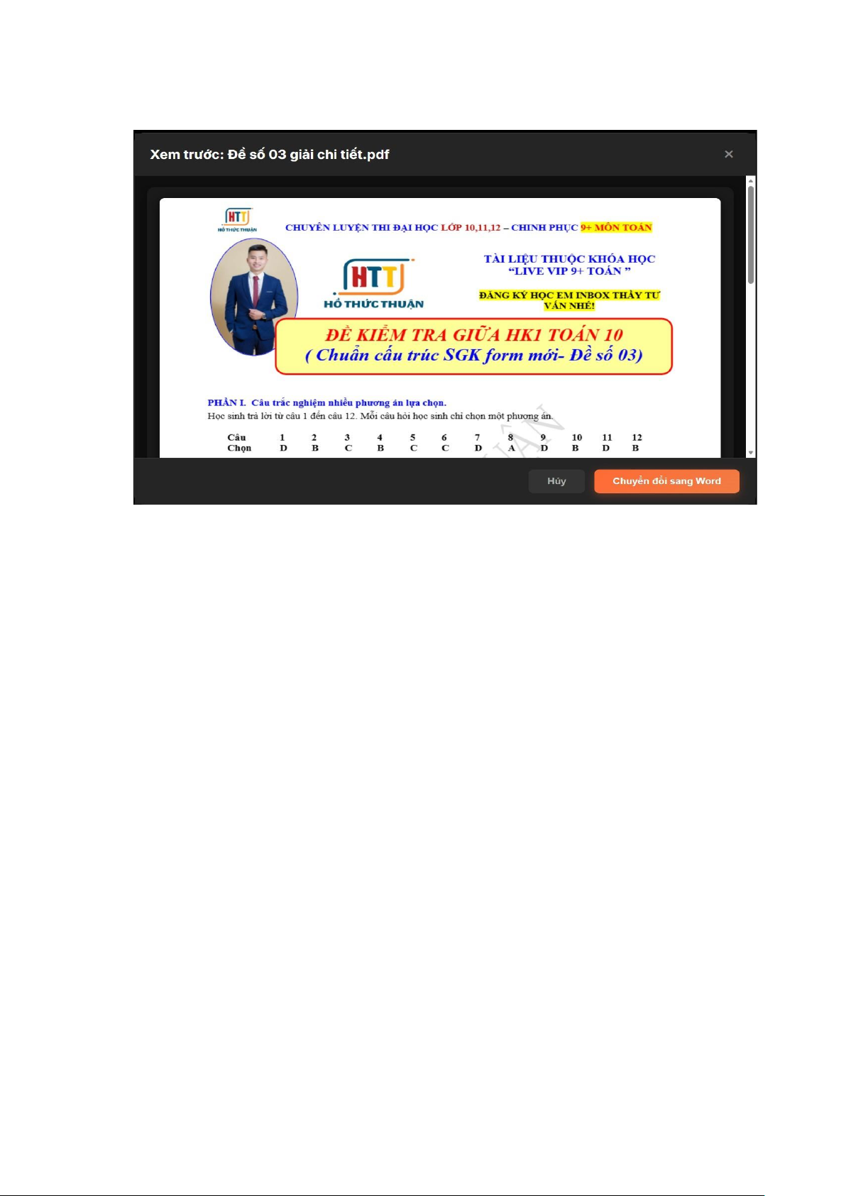 ❖ Trước khi bắt đầu quá trình chuyển đổi, hệ thống cung cấp chức năng xem
