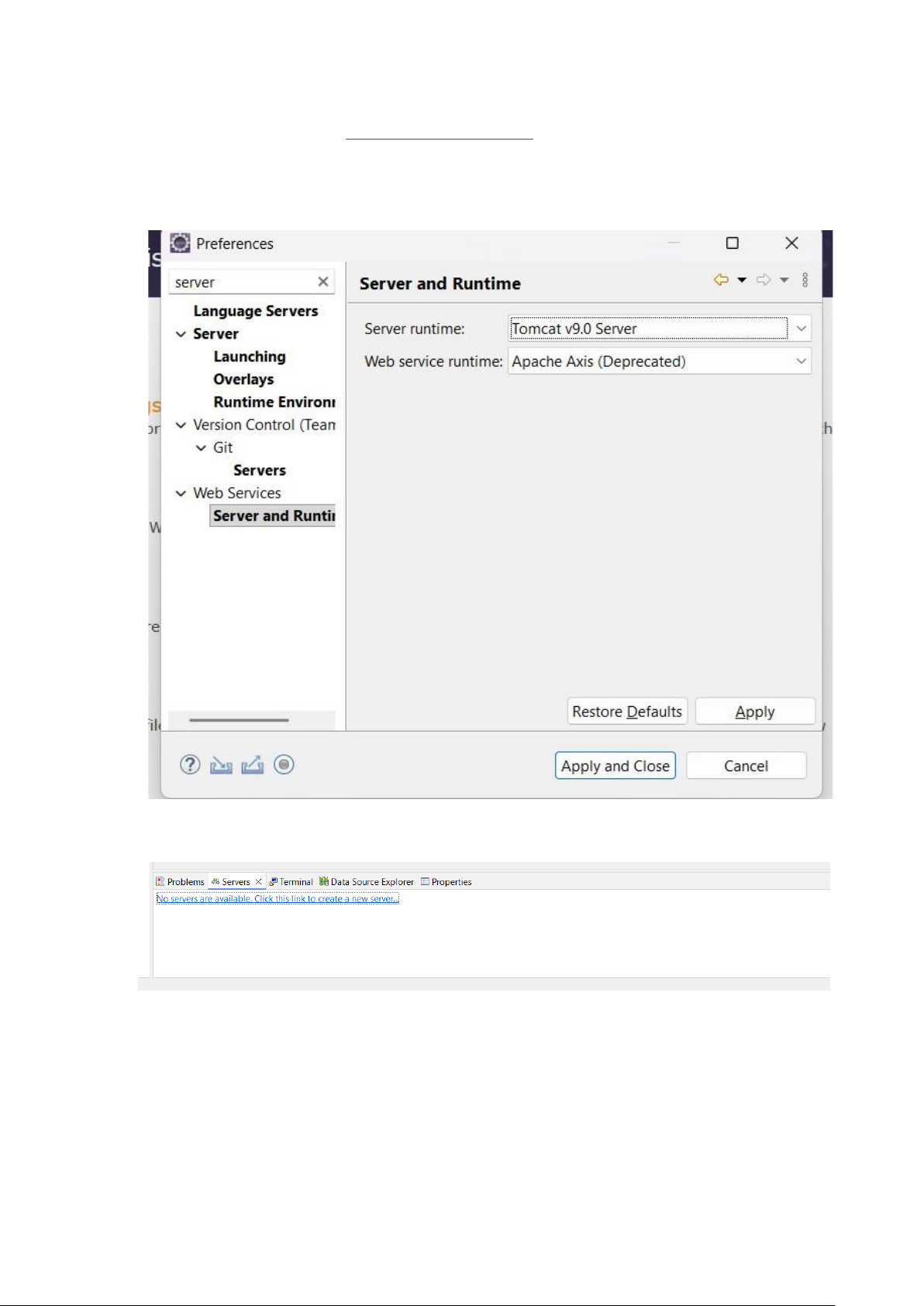 Bước 2: Tại tab Preferences của cửa sổ windown trên eclipse tìm tới mục server and