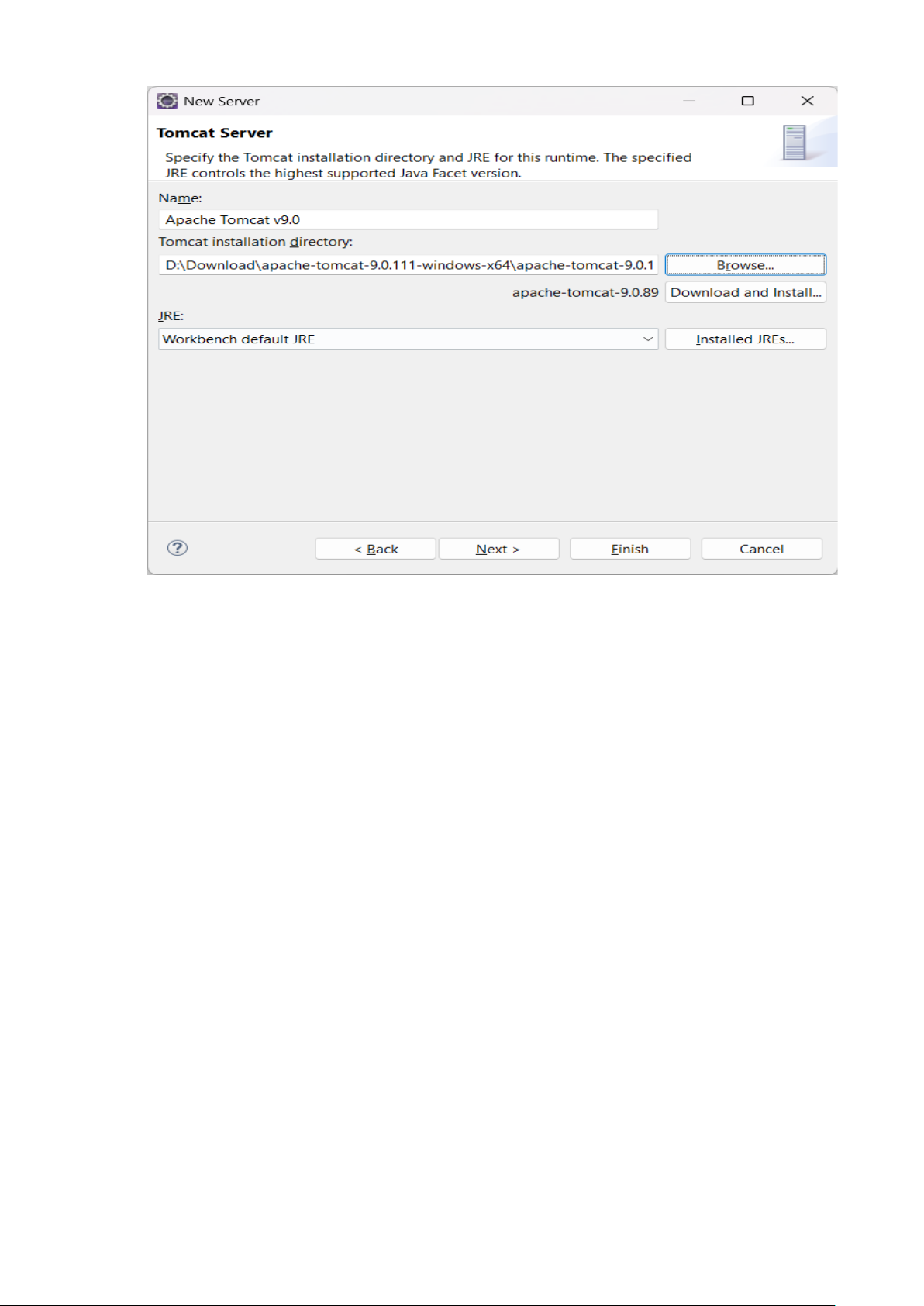 Bước 5: Ở mục tomcat installation directory trỏ đường dẫn tới folder cài tomcat