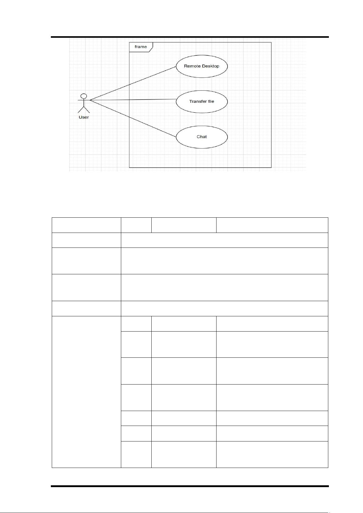 Bảng 1: Đặc tả chức năng "Remote Desktop" Mã Use case UC-1 Tên Use case Remote Desktop Tác nhân User Mô tả