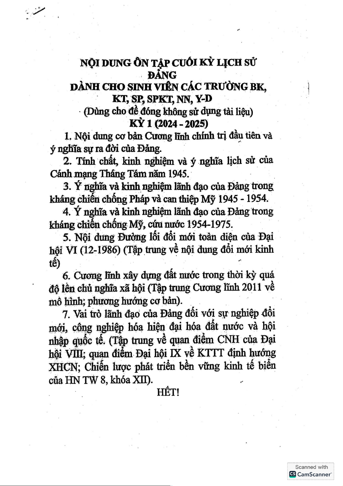 Các câu hỏi cuối kỳ môn lịch sử Đảng–Trường Đại học bách khoa – đại học Đà Nẵng
