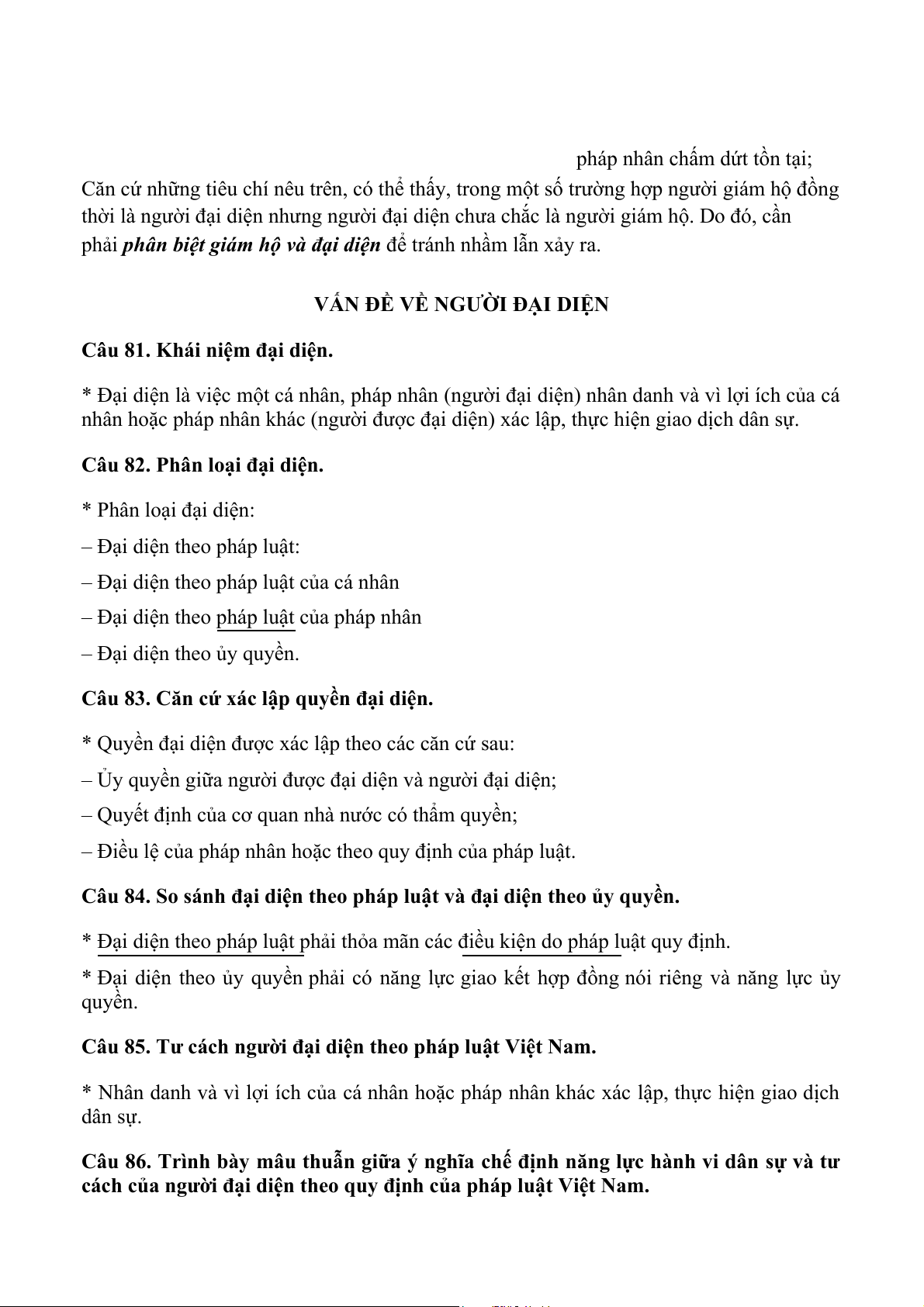 Câu 85. Tư cách người đại diện theo pháp luật Việt Nam.