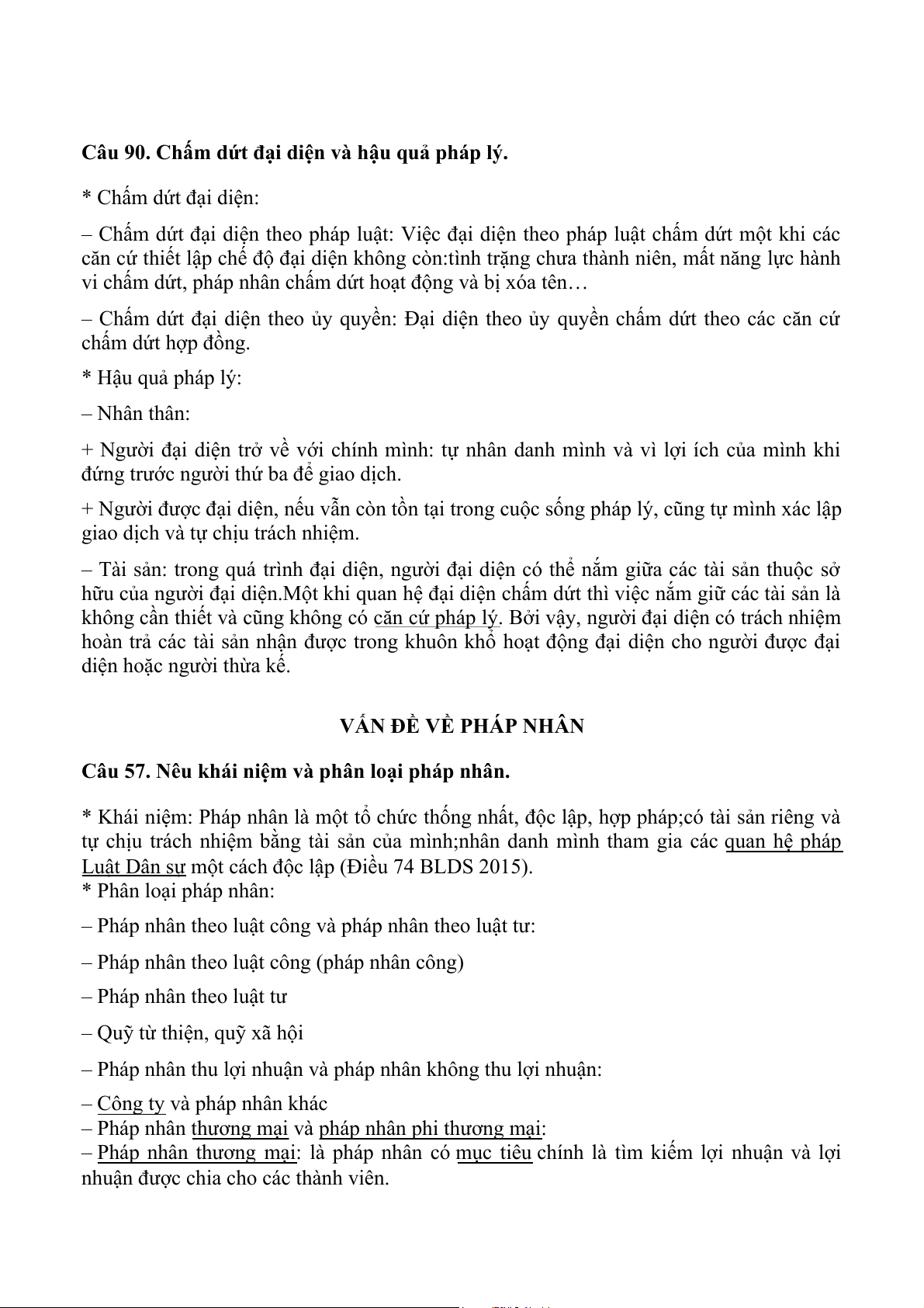 Câu 90. Chấm dứt đại diện và hậu quả pháp lý. * Chấm dứt đại diện: