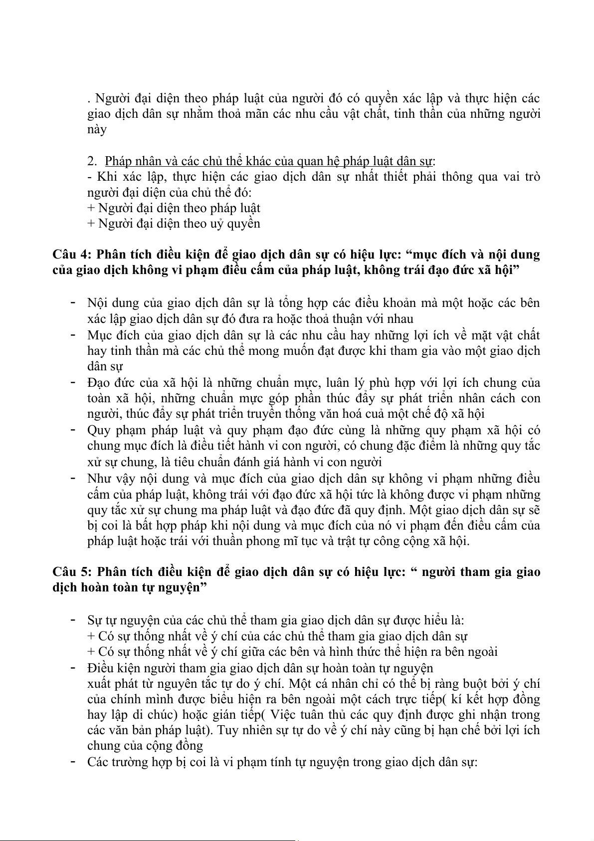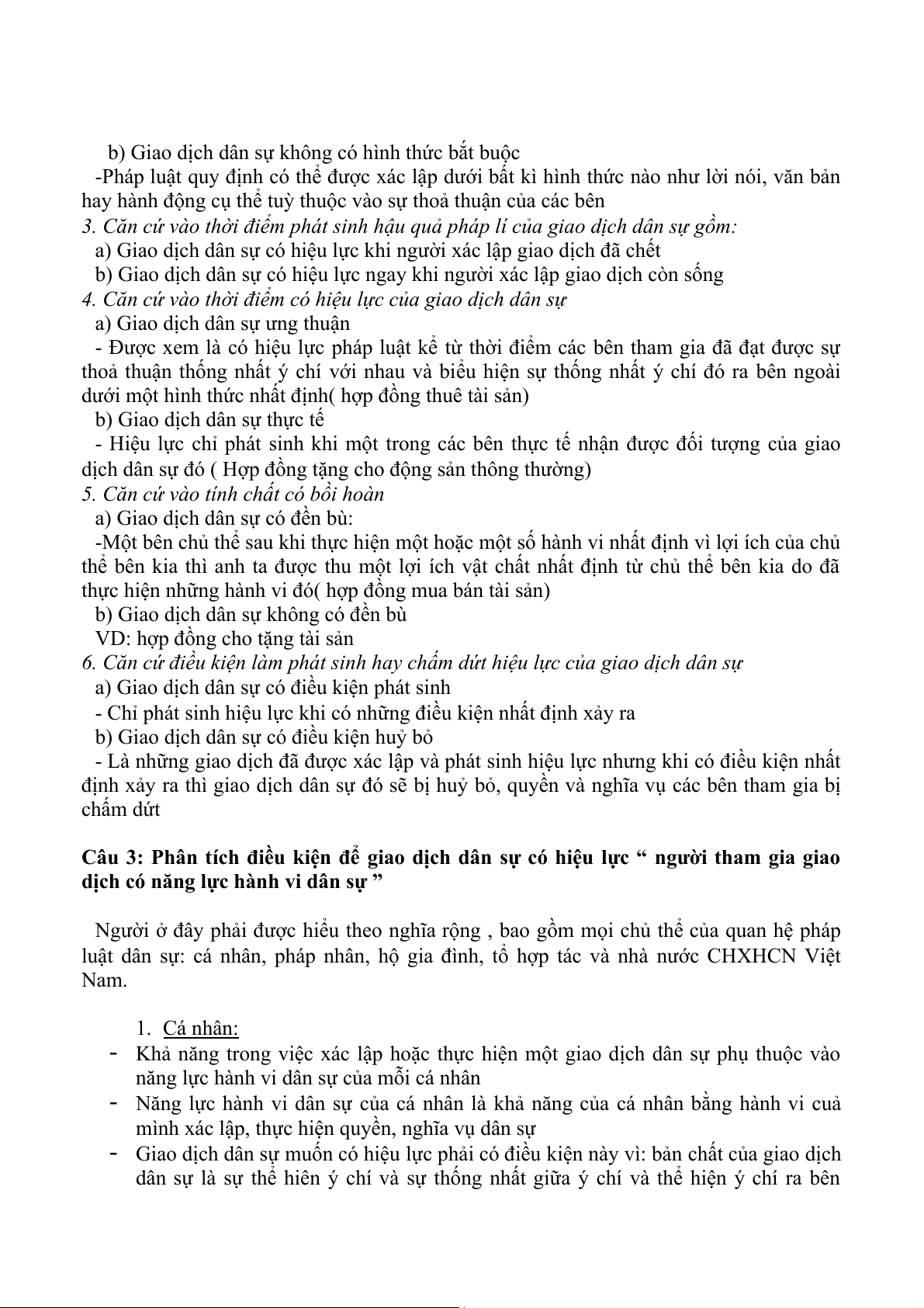 Câu 3: Phân tích điều kiện để giao dịch dân sự có hiệu lực “ người tham gia giao