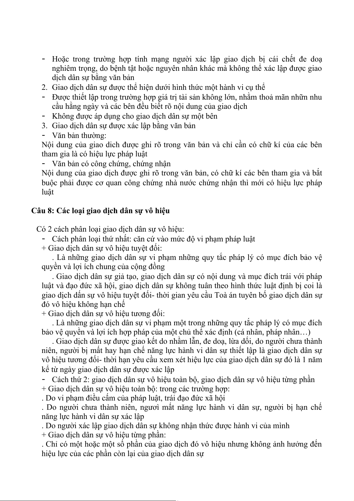 Câu 2: Phân loại giao dịch dân sự