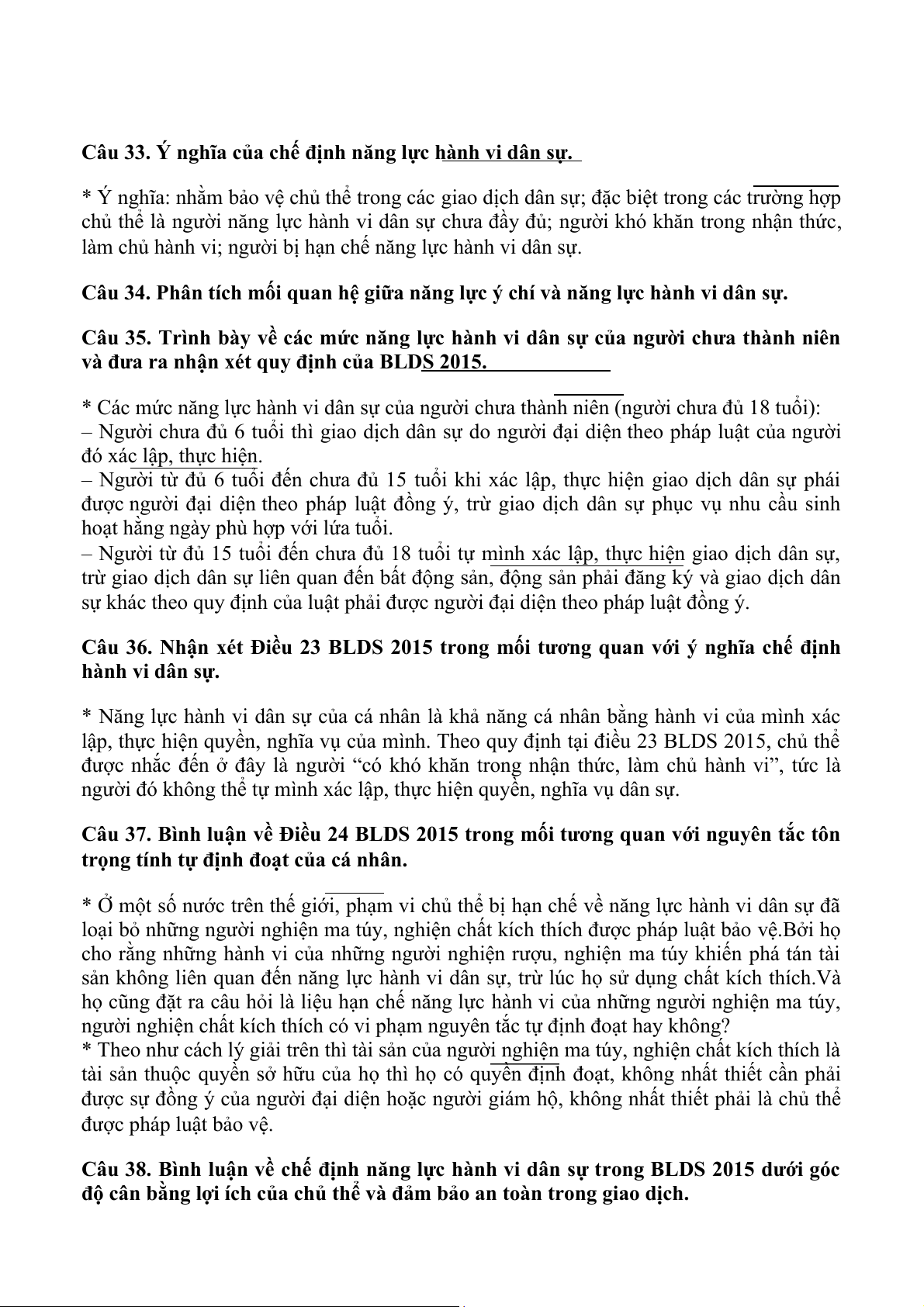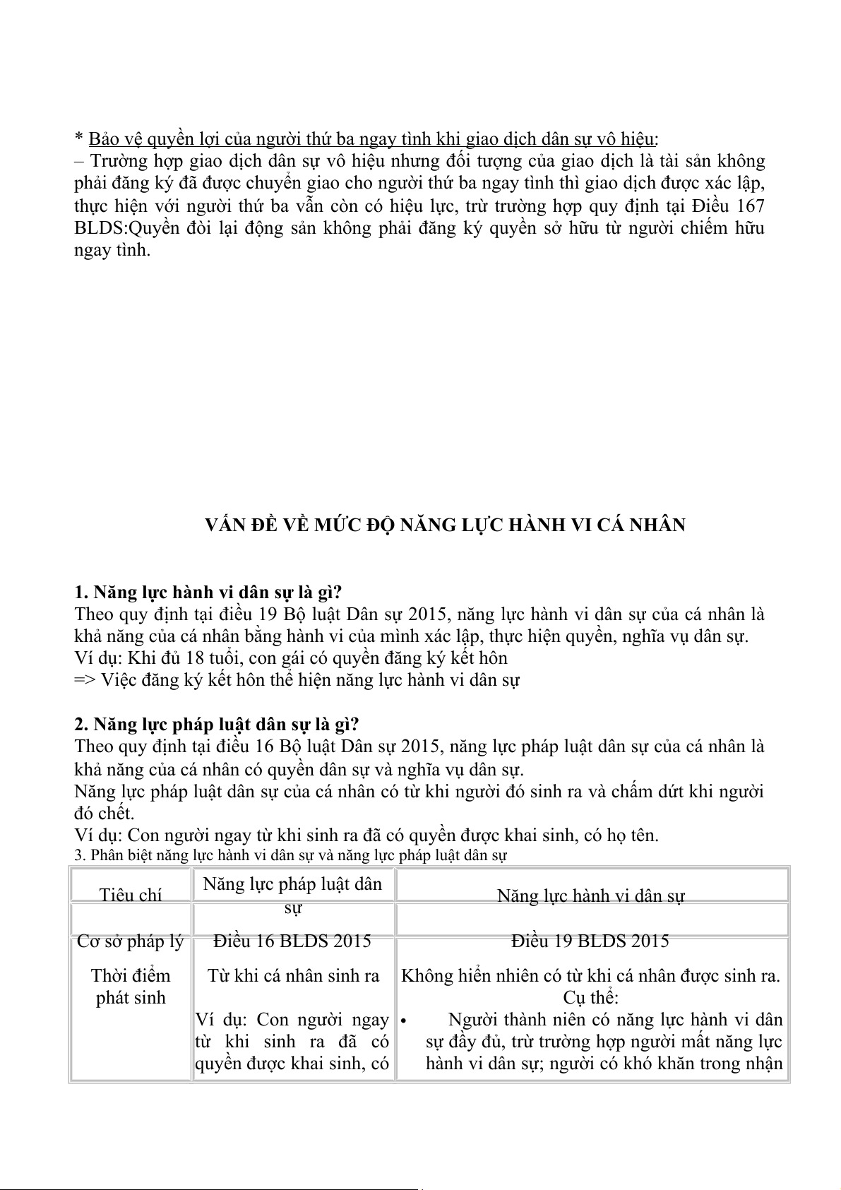 * Theo quy định của BLDS 2015 thì “năng lực hành vi dân sự của cá nhân là khả năng cá