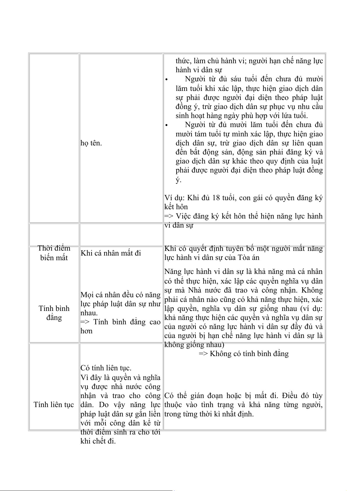pháp luật dân sự, năng lực
