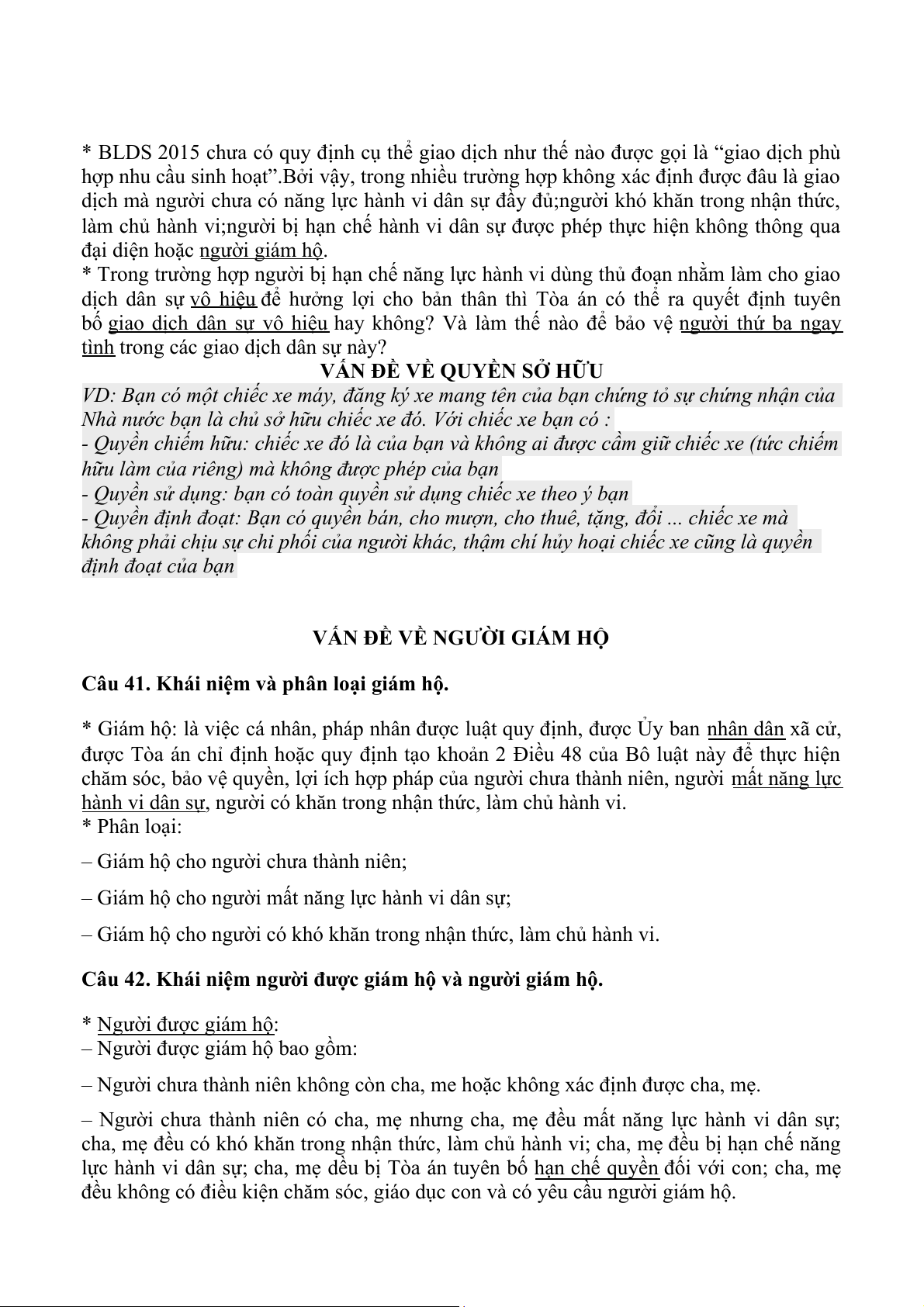 VẤN ĐỀ VÊ GIAO DỊCH DÂN SỰ