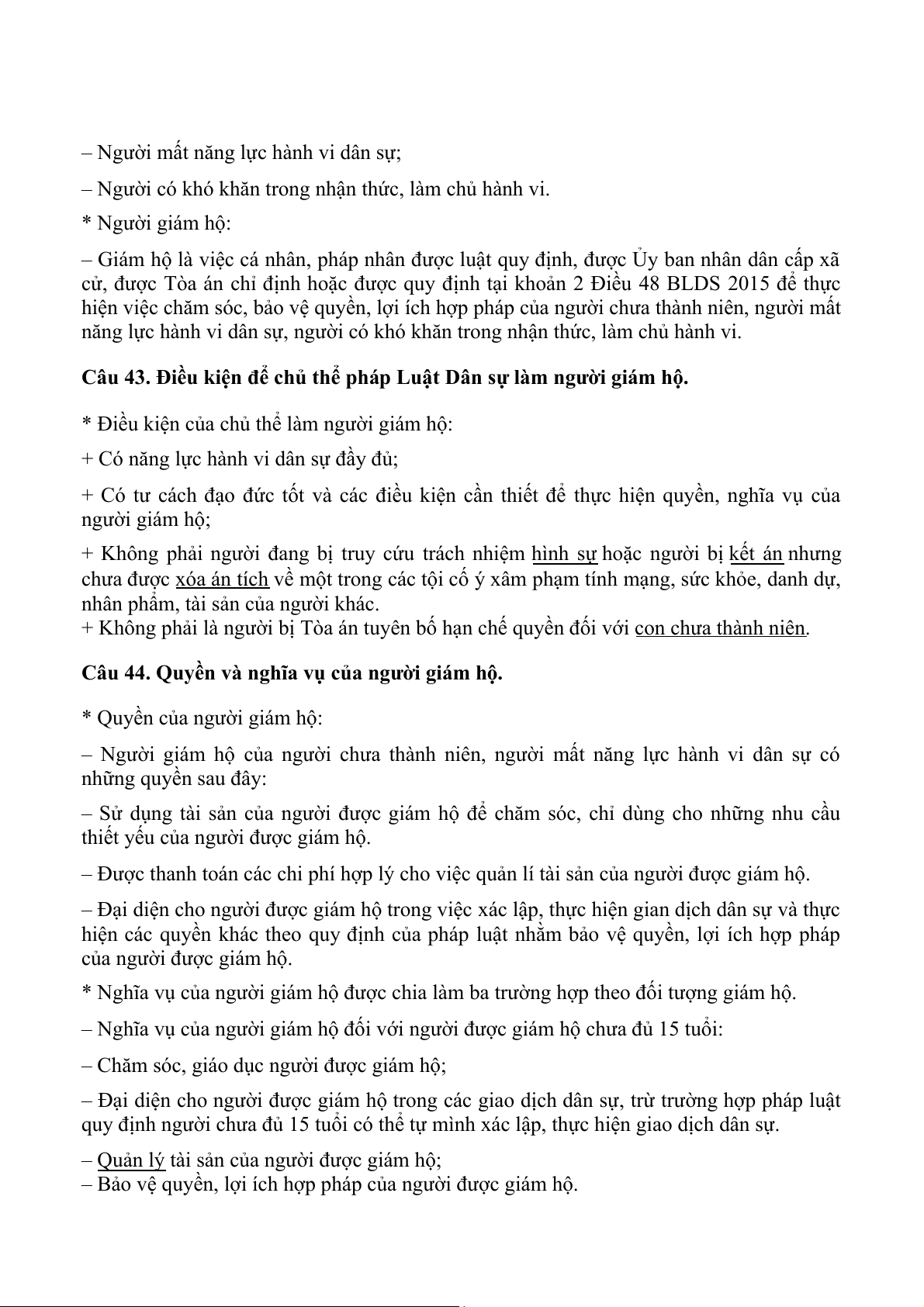 + Đối với cá nhân là người có năng lực hành vi dân sự không đầy đủ( người từ đủ