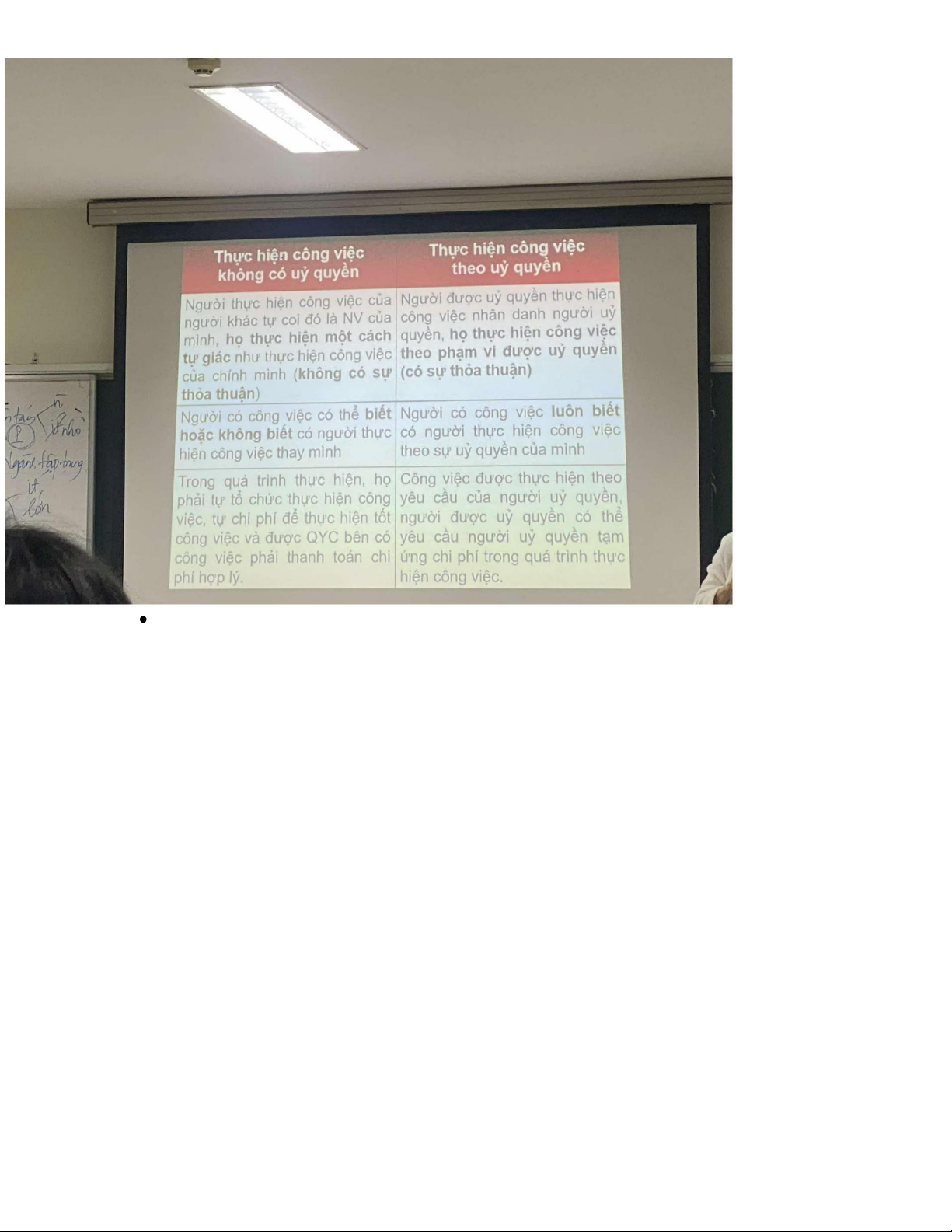 Trong QH thực hiện công việc không có UQ, NV chỉ phát sinh khi CV đã được hoàn