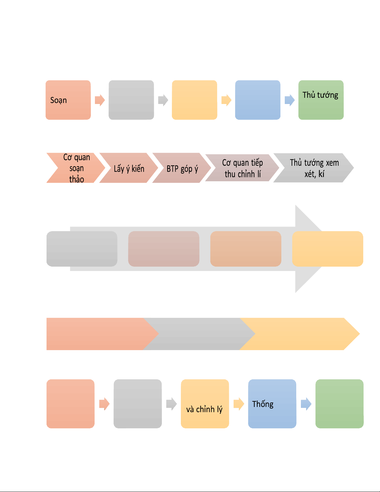 4.3. Của BT, TT cơ quan ngang bộ Đơn vị nghiên Bộ trường, Thủ Đơn vị soạn thảo Đơn vị dự thảo cứu dự thảo và trưởng xem xét chỉnh lý lấy ý kiến lần cuối rồi kí 4.4. Của UBND CQCM thuộc UBND xây dựng UBND xem xét Quyết định ban hành dự thảo 4.4 QĐHC liên tịch Các cơ Chọn ra CQ Lấy ý kiến Cùng kí quan cùng chủ trì nhất ban hành phối hợp soạn thảo