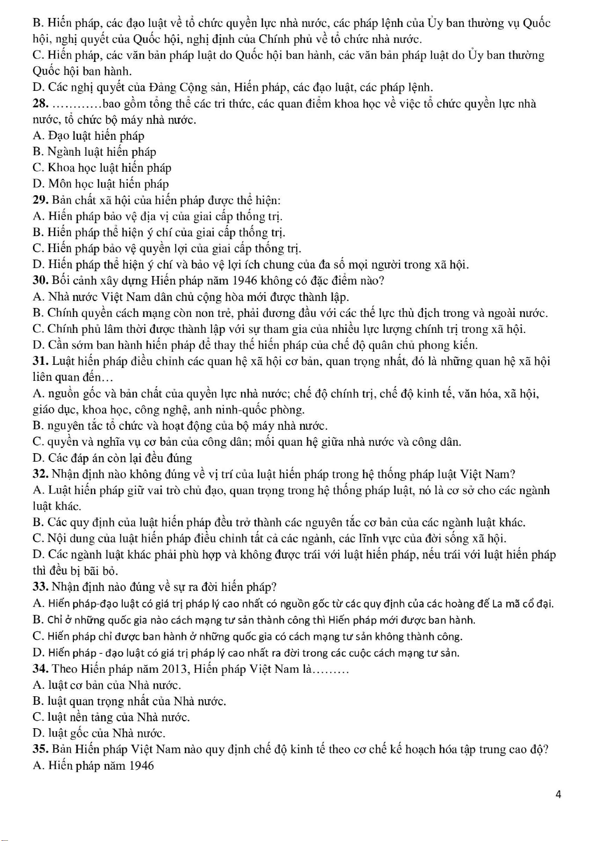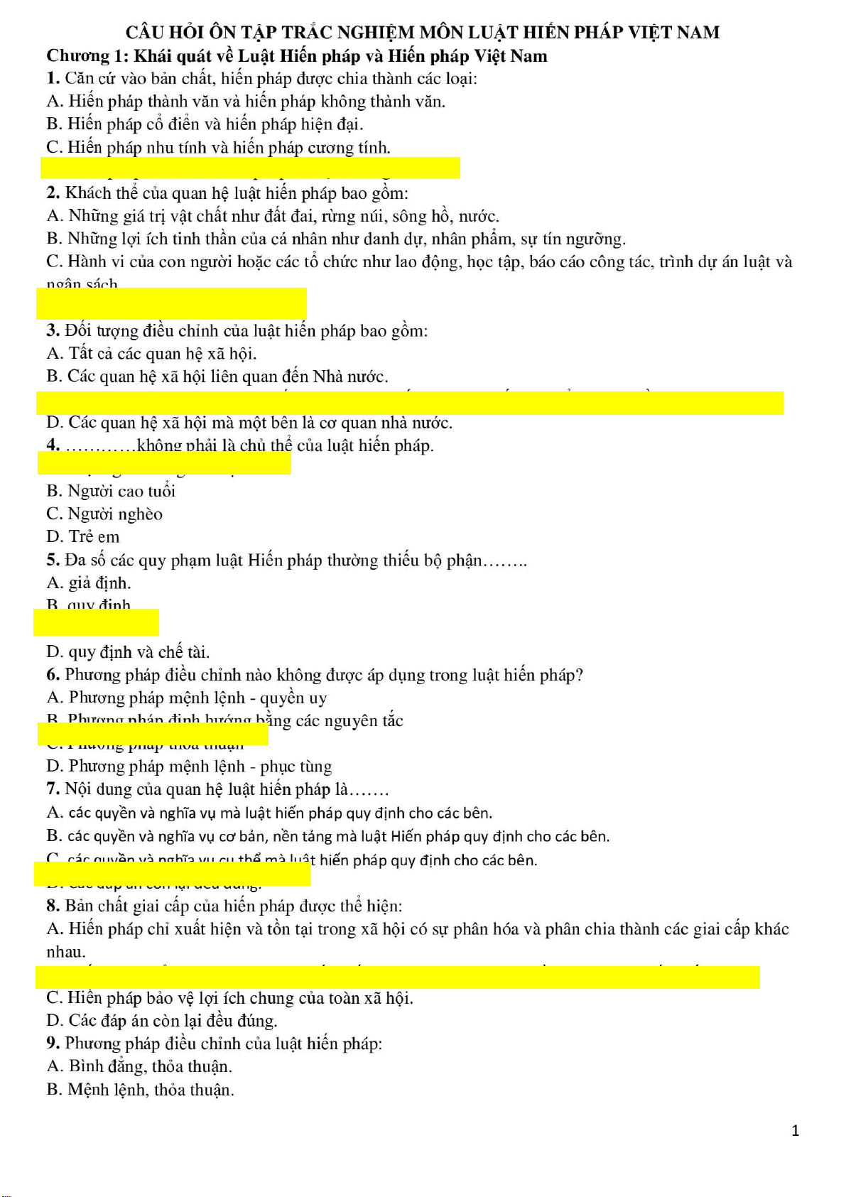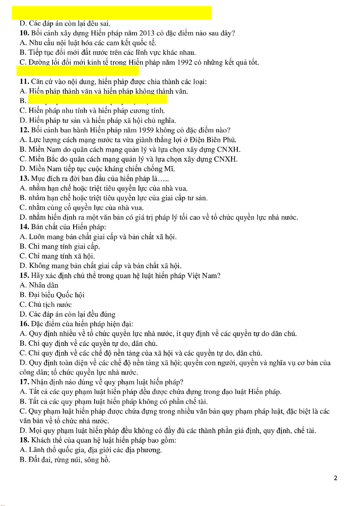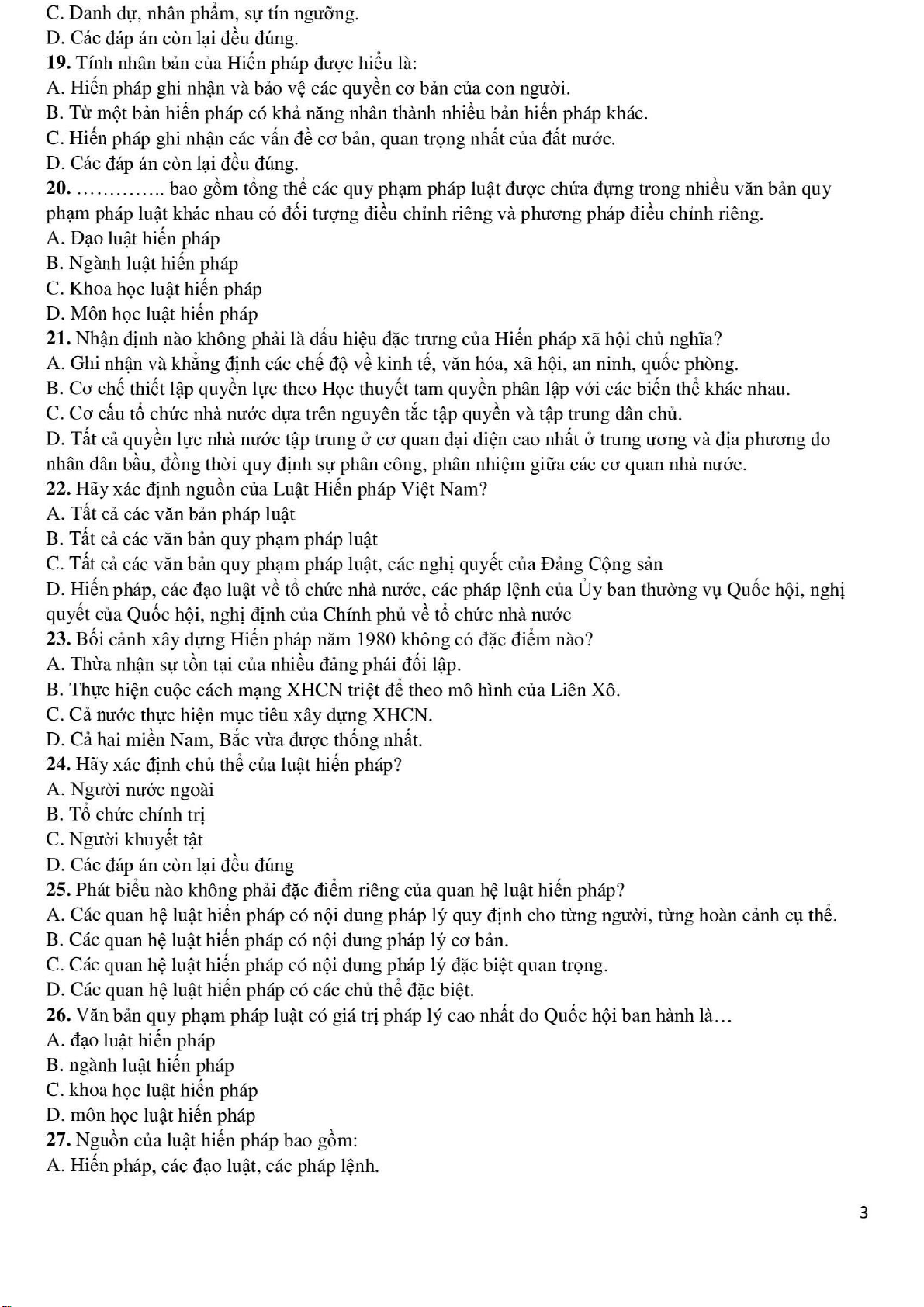 Đề ôn thi Luật Hiến Pháp HUB C1