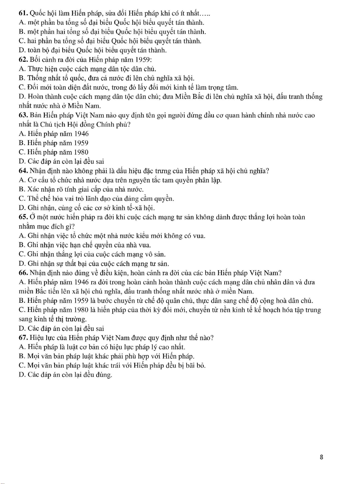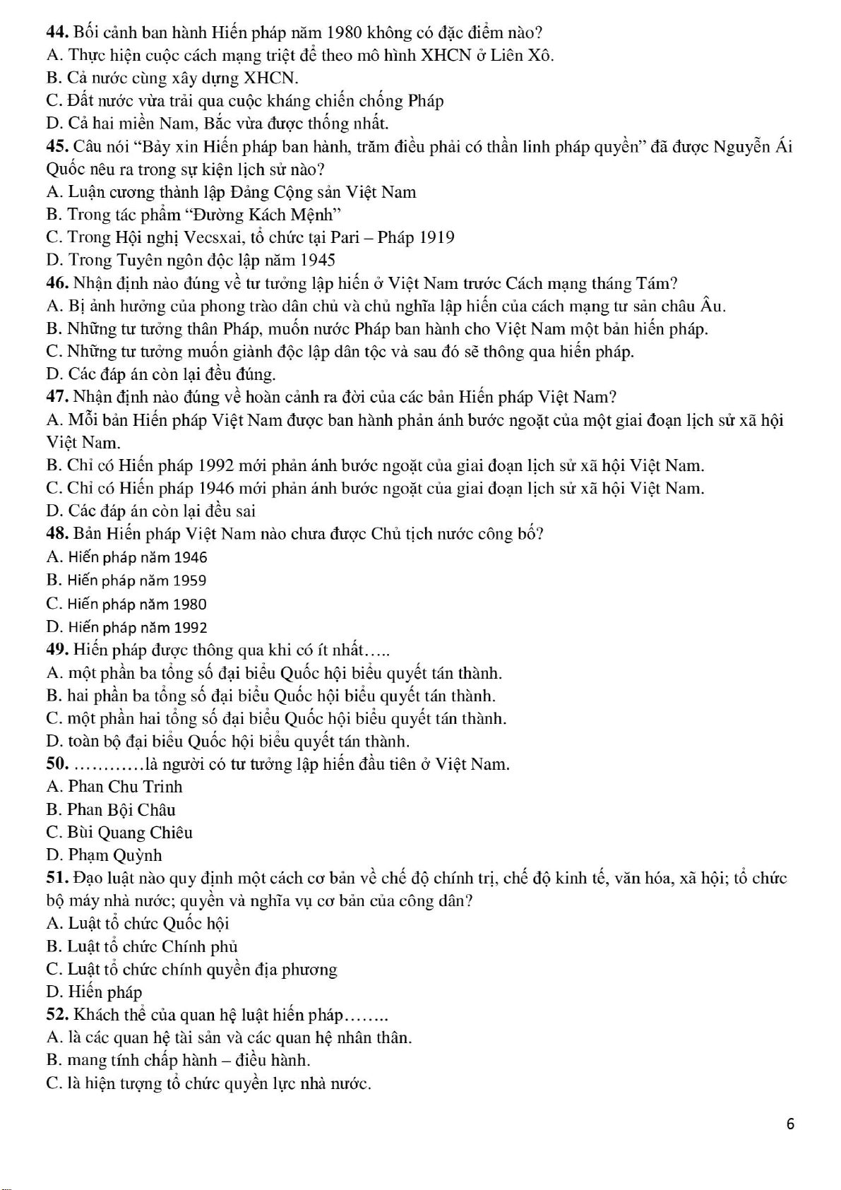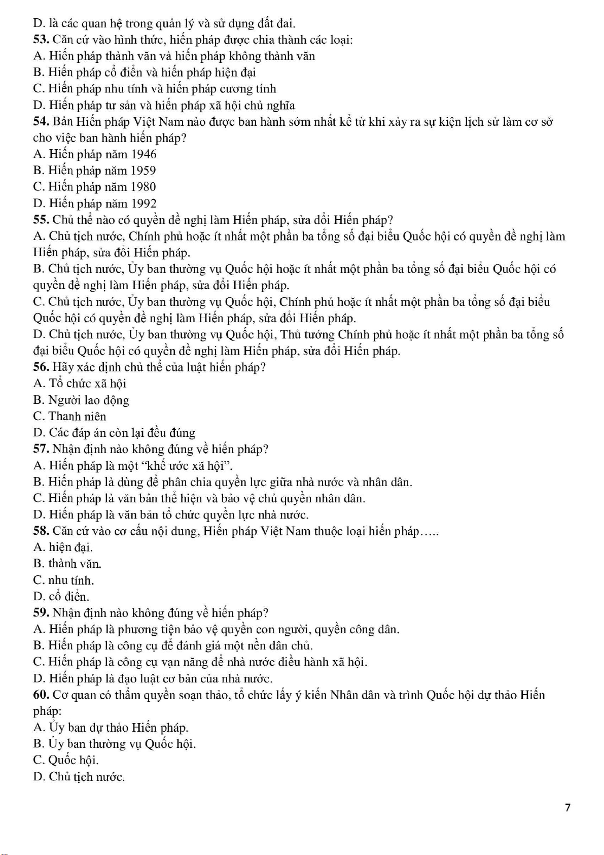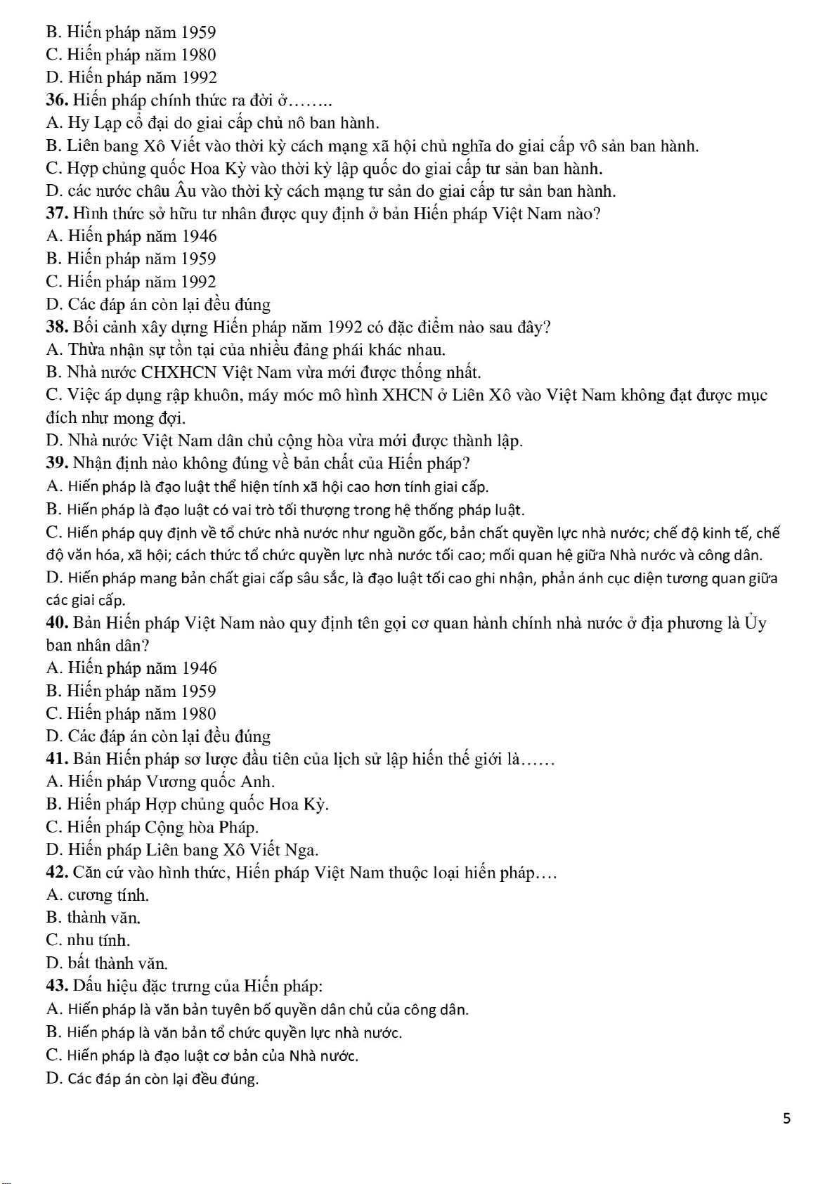 Đề ôn thi Luật Hiến Pháp HUB C1