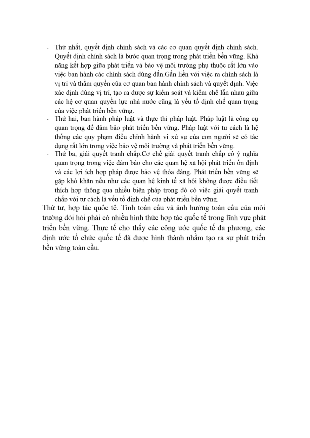 phát triển và hội nhập quốc tế, đặc biệt là các biện pháp kinh tế để bảo bảo sự hài hòa giữa
