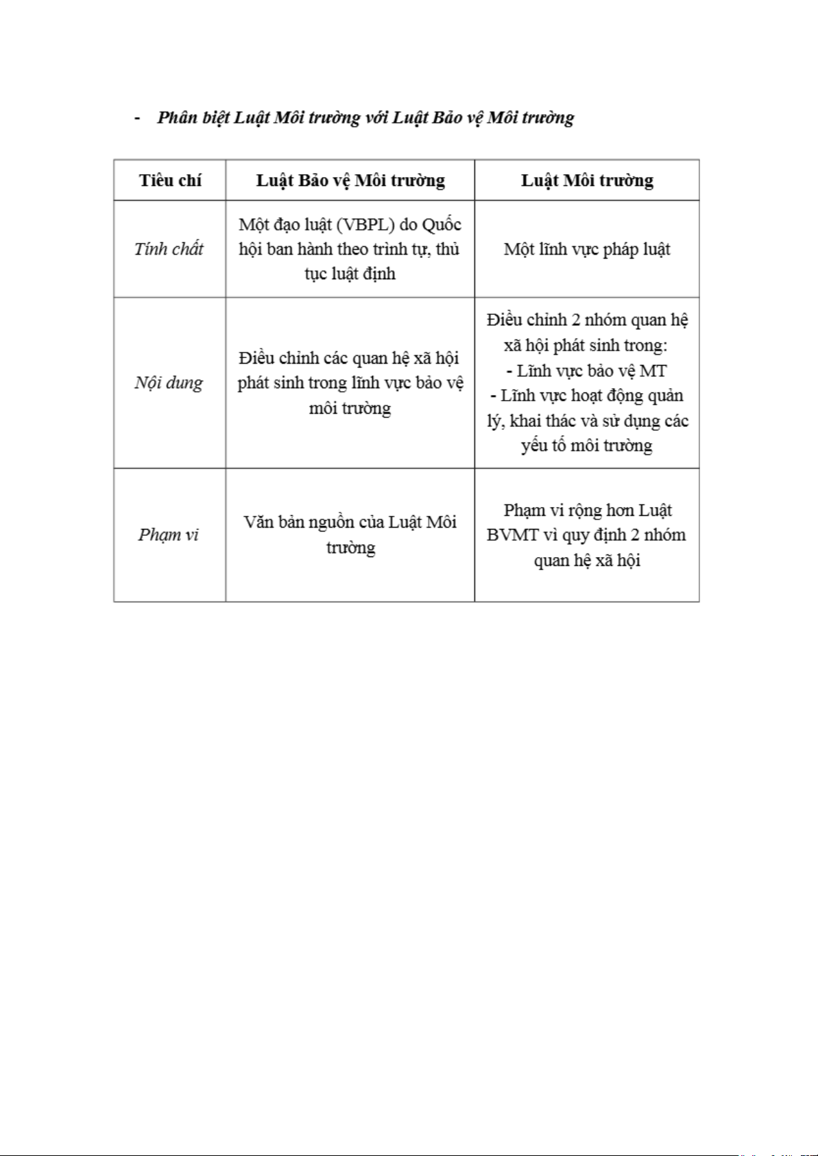 Lưu ý: Chúng ta không nói Luật MT là một ngành luật trong hệ thống pháp luật Việt Nam vì