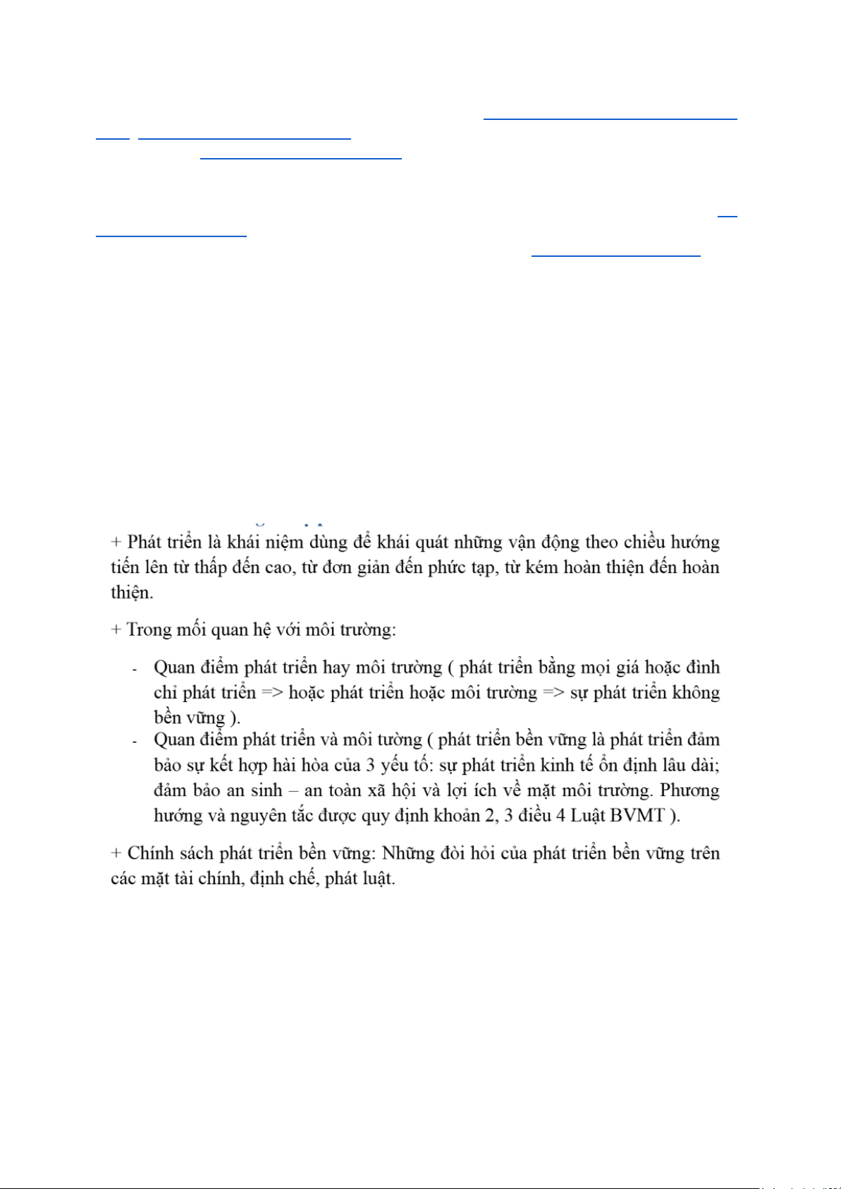 7. Khái niệm phát triển bền vững? Các yếu tố hợp thành phát triển bền vững?....... 14