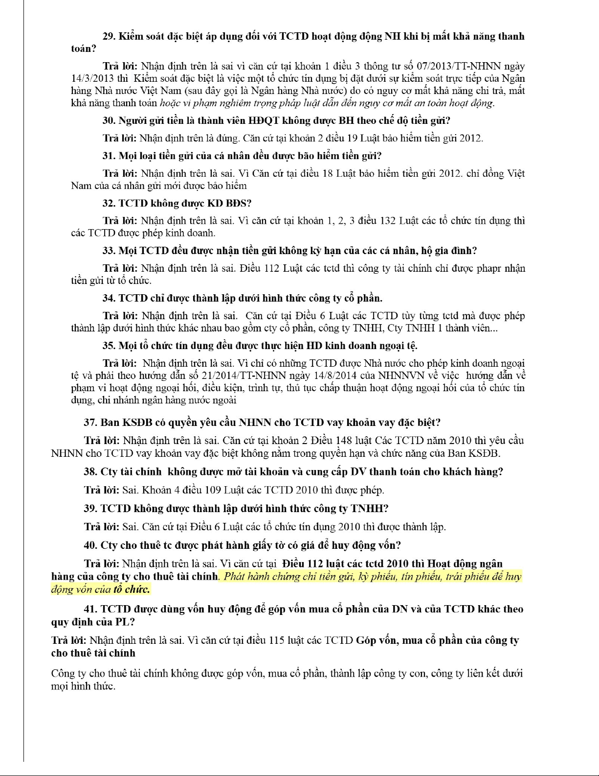 Câu 2: Công ty cho thuê tài chính có quyền nhận tiền gửi của cá nhân. Nhận định này là đúng