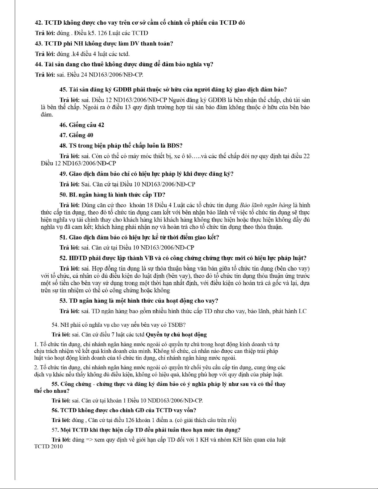 11. Ngân hàng phải có nghĩa vụ cho vay nếu bên vay có tài sản thế chấp. => Nhận định này sai. Điều 7 Quyết