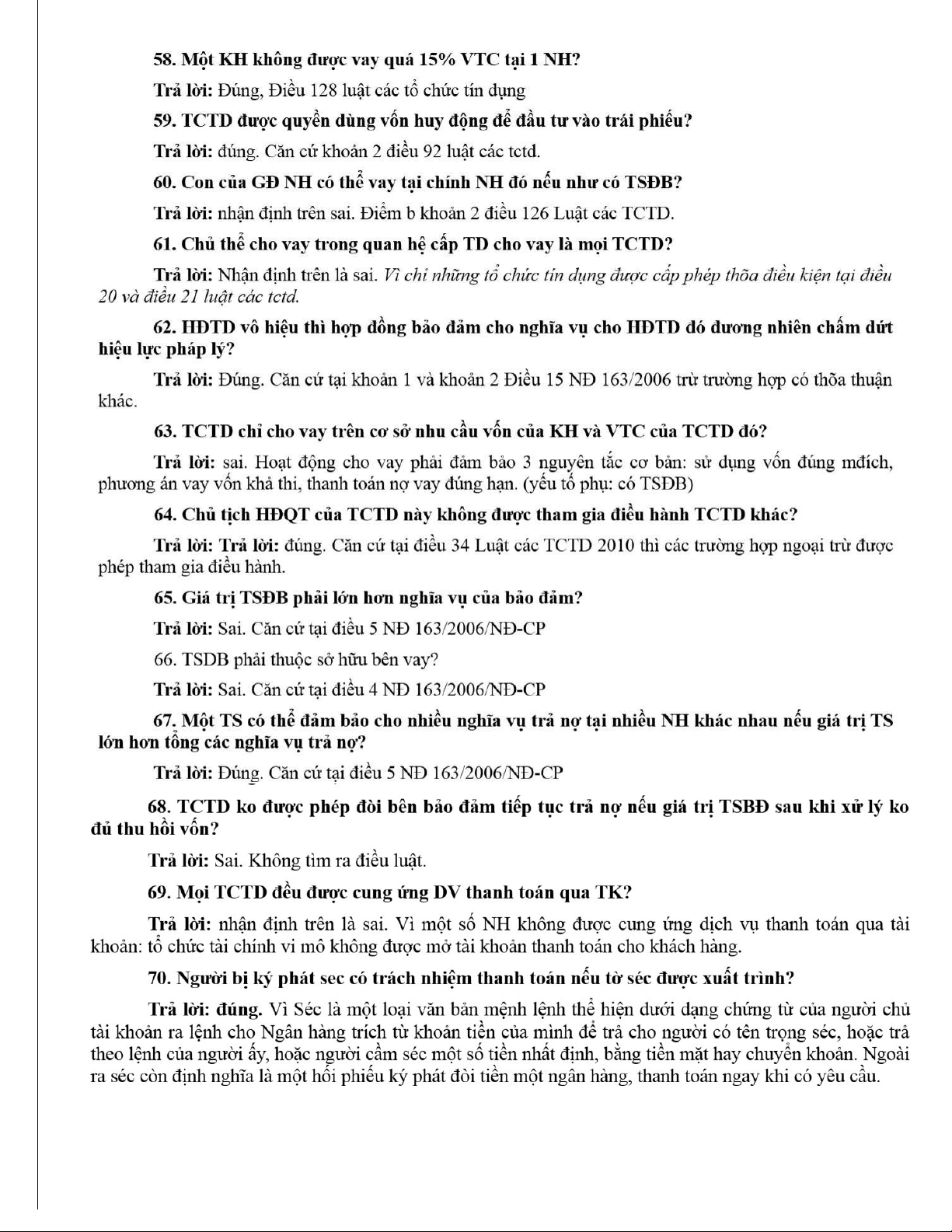 15. Một khách hàng không được vay vượt quá 15% vốn tự có tại một ngân hàng. => Nhận định này sai. Khoản 3 Điều 128.