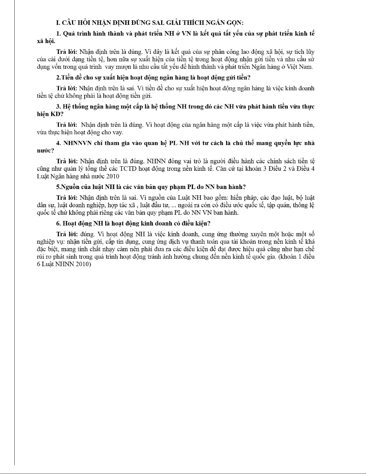 Câu 1: Trong hệ thống ngân hàng một cấp, các ngân hàng đều được phép thực hiện các nghiệp vụ giống nhau.