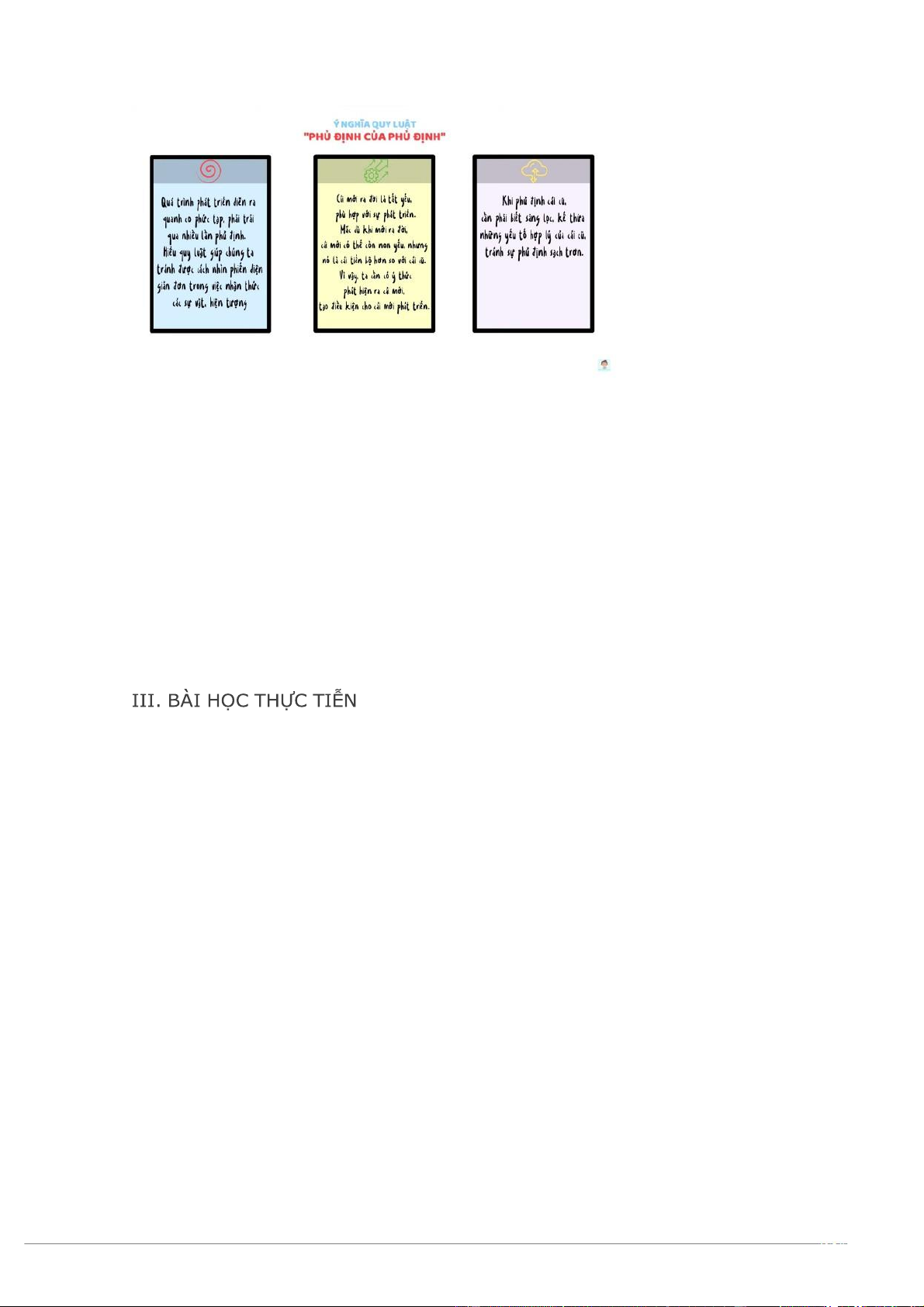 thế cái cũ. Vì vậy, cần có thái độ lạc quan trước cái mới và tạo điều kiện cho cái mới ra đời.