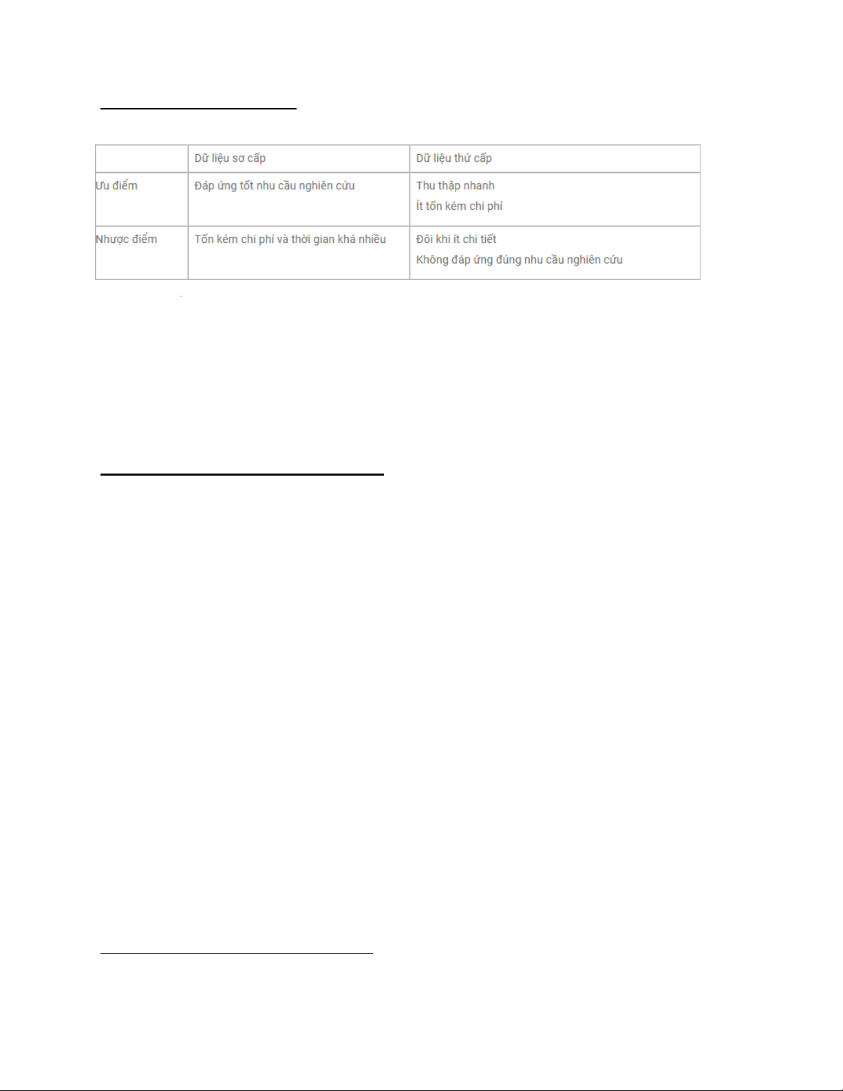 ✓ Dữ liệu thứ cấp là dữ liệu đã có sẵn, không phải do mình thu thập, đã công bố nên dễ