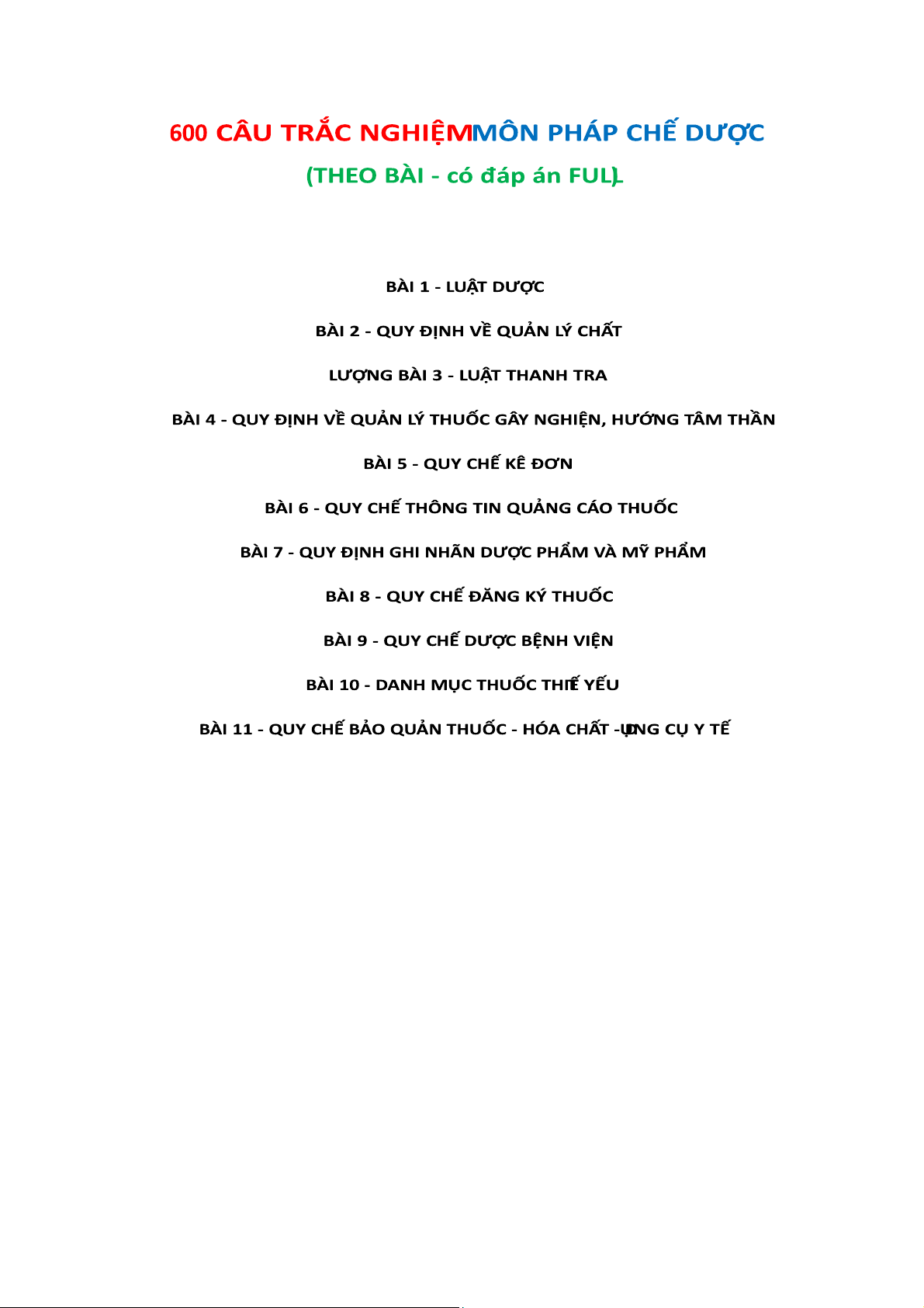 Câu 1. Luật Dược 105/2016/QH13 gồm: