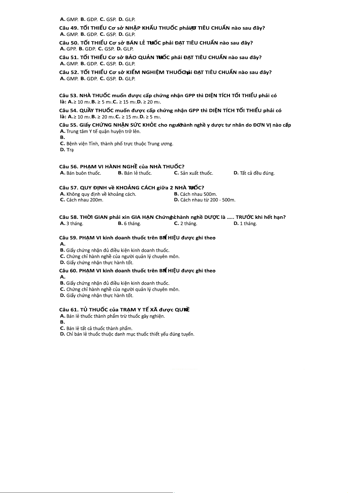 Câu 19. GIẤY CHỨNG NHẬN ĐỦ ĐIỀU KIỆN KINH DOANH THUỐC của