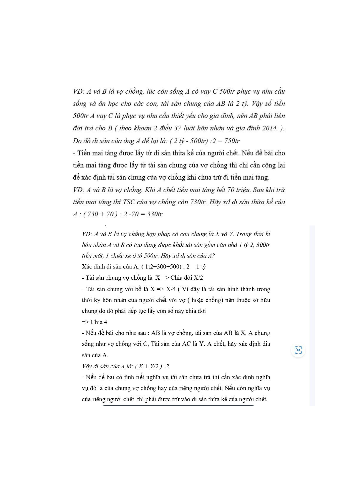 + Căn nhà là tài sản chung của ông A và bà B trị giá 240 triệu.