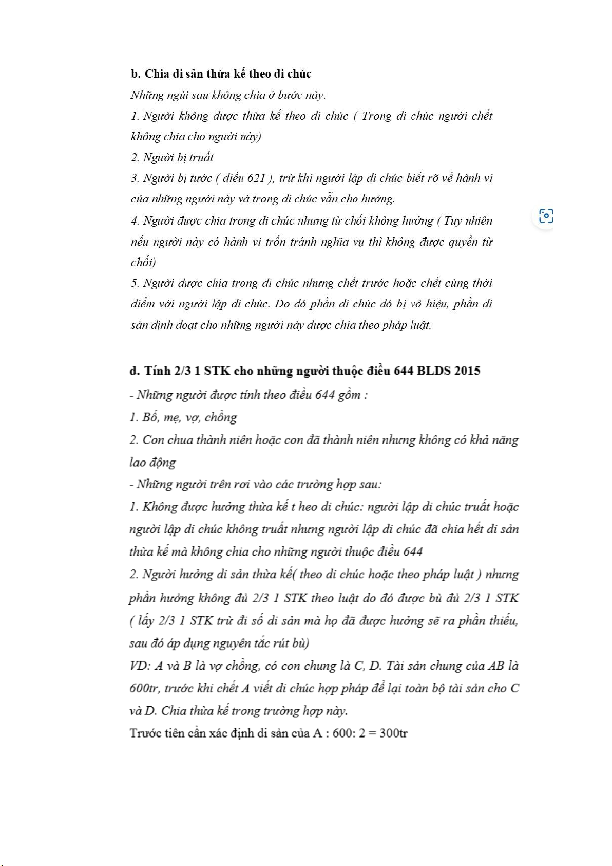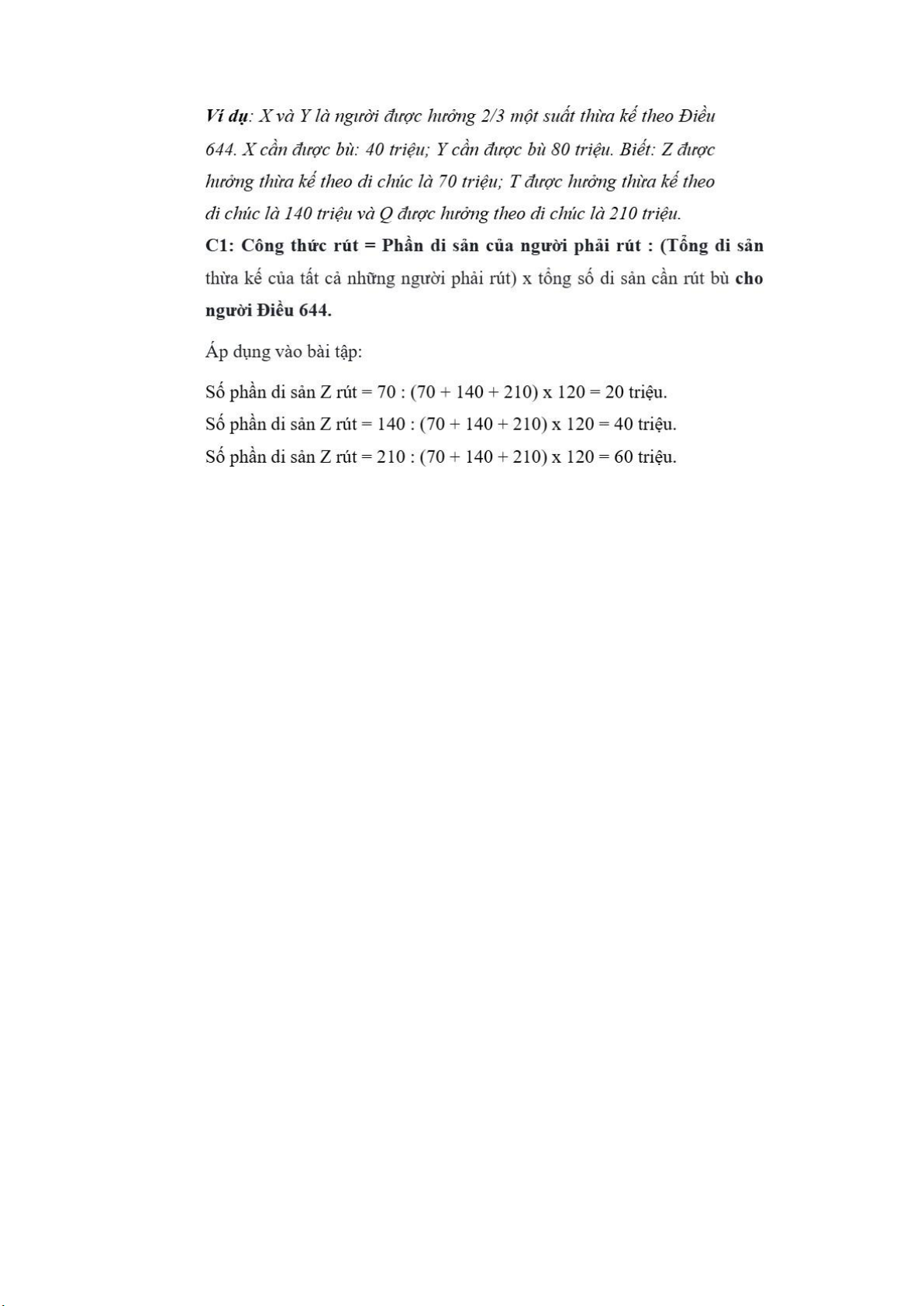 hưởng 2/3 nhân suất theo điều 644 BLDS 2015. Như vậy, ta được: