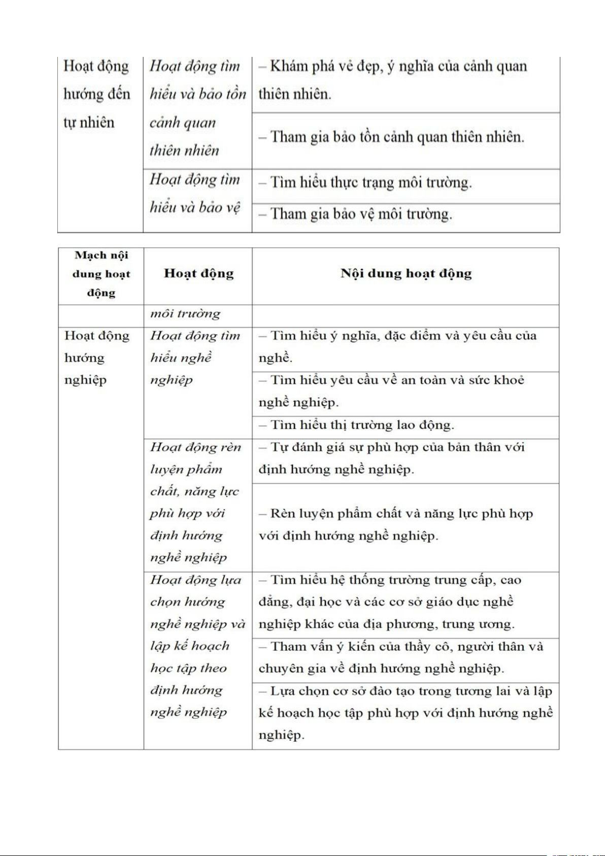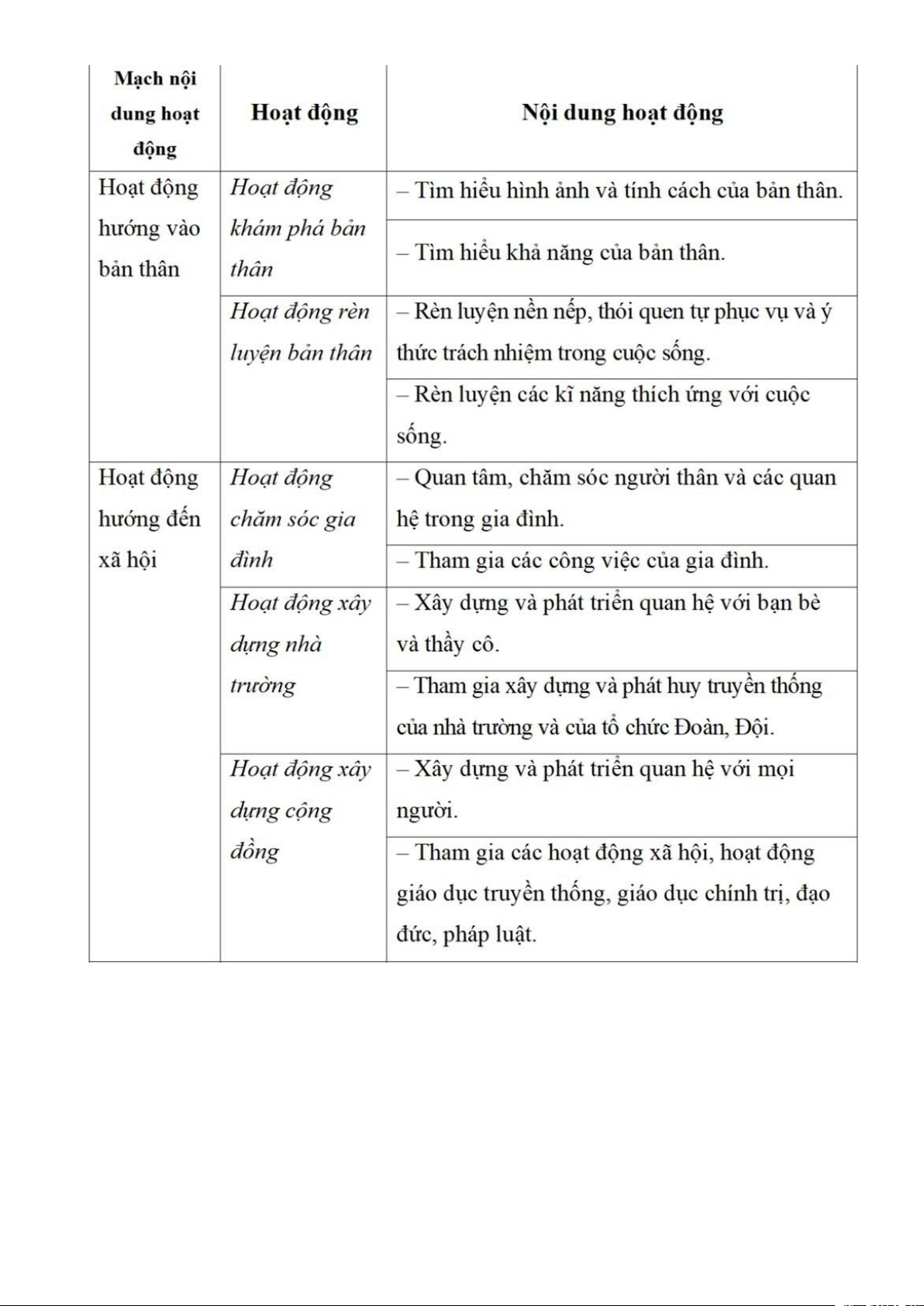 nghiệm (hoạt động tập thể, hoạt động trải nghiệm thường xuyên, hoạt động xã hội và