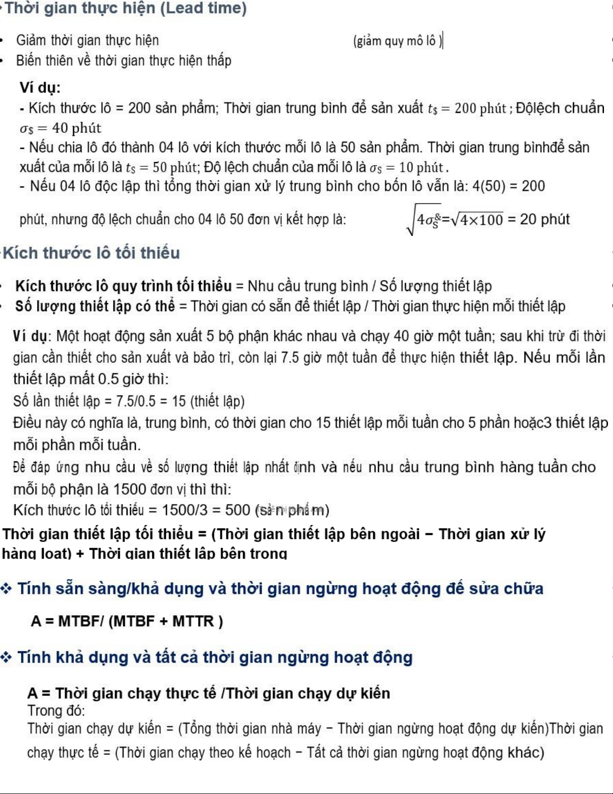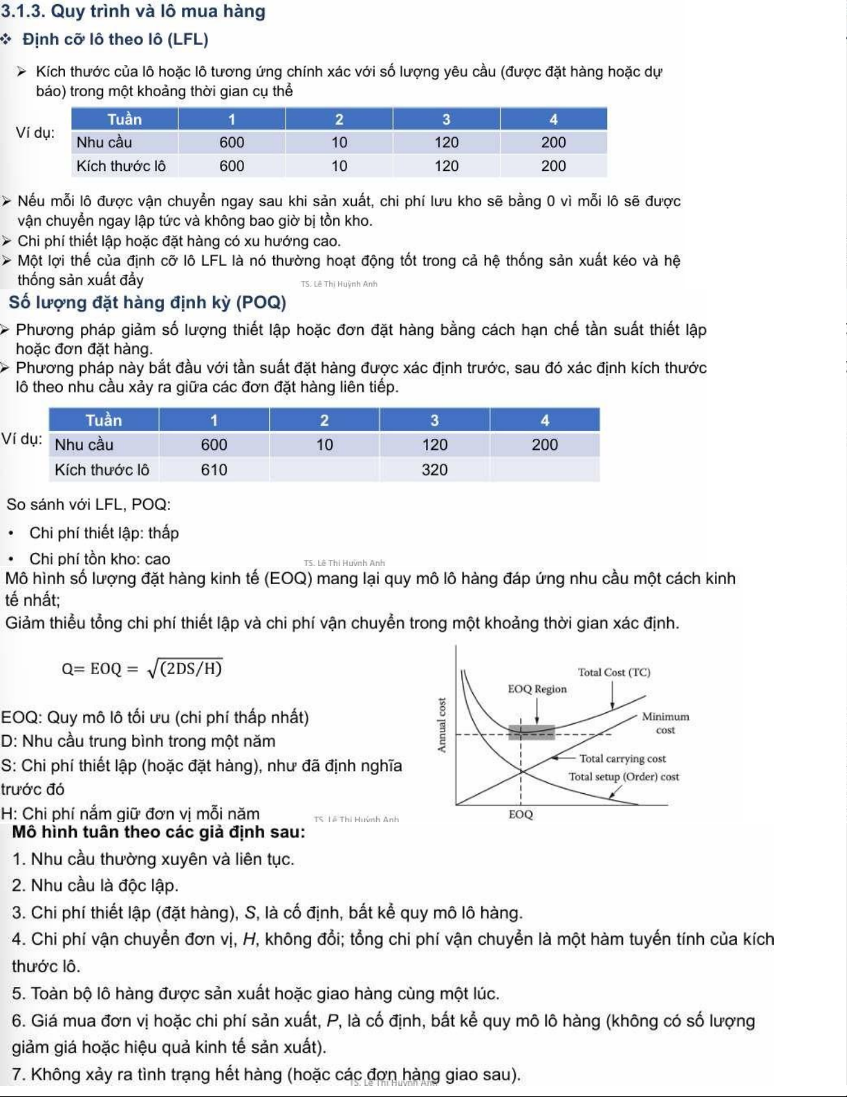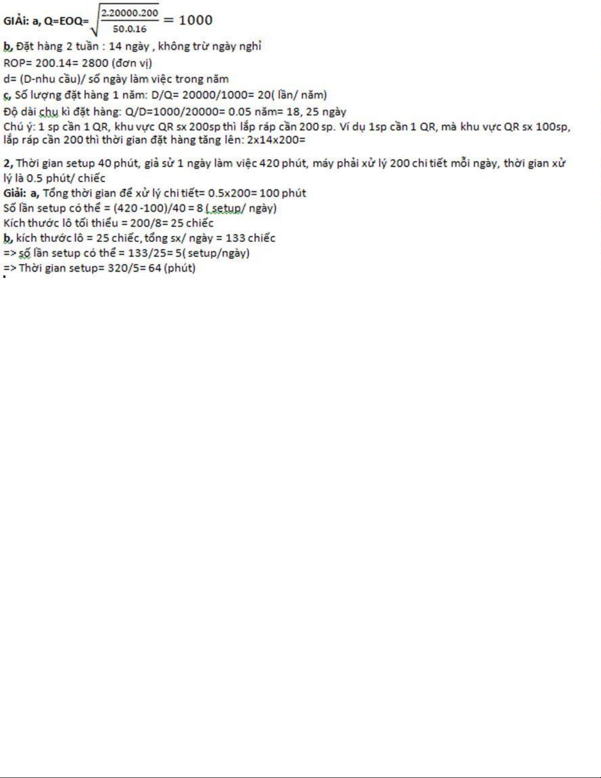3. Thiết lập quy mô lô tối ưu: Quy mô lô nên được xác định dựa trên các yếu tố như: