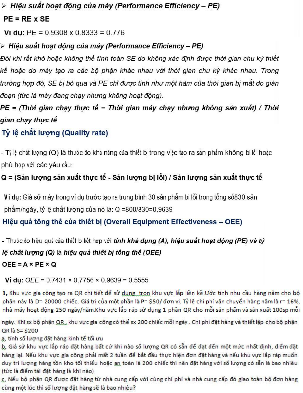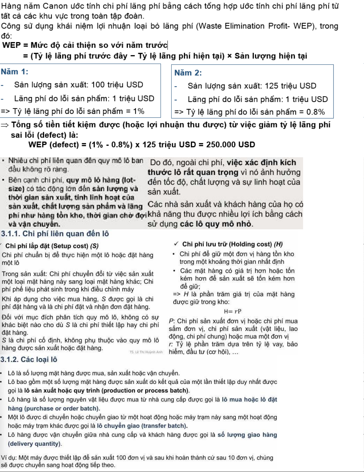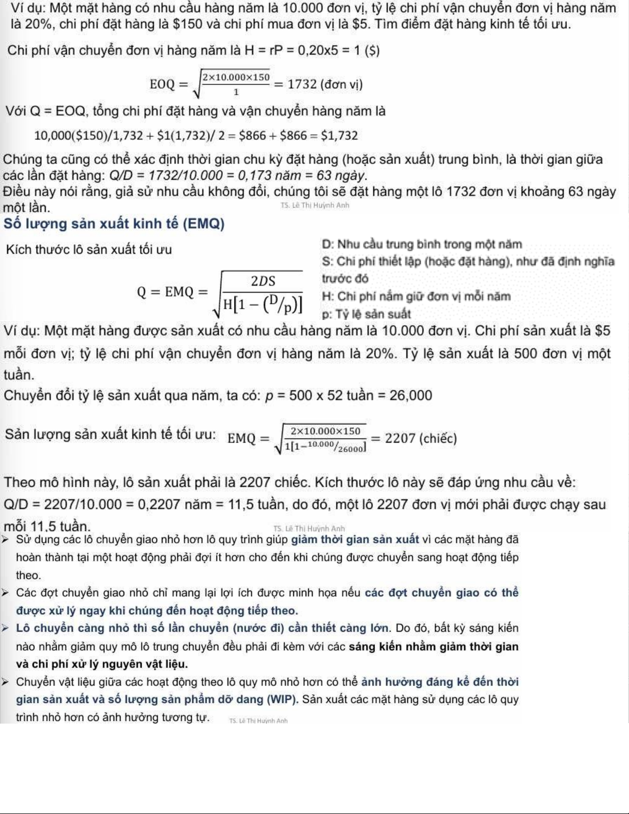 3. Thiết lập quy mô lô tối ưu: Quy mô lô nên được xác định dựa trên các yếu tố như: