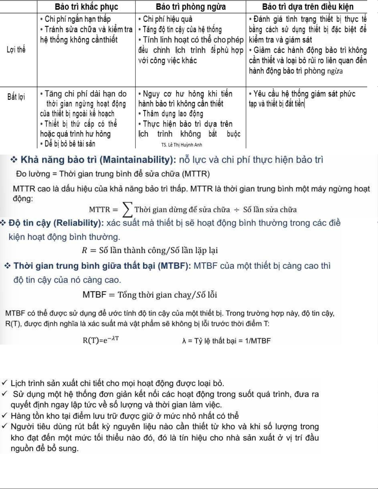 Tính khả dụng: tỷ lệ thời gian mà thiết bị có sẵ để thực hiện công việc so với thời gian cần có. MTTR Giảm MTBF tăng => A tăng