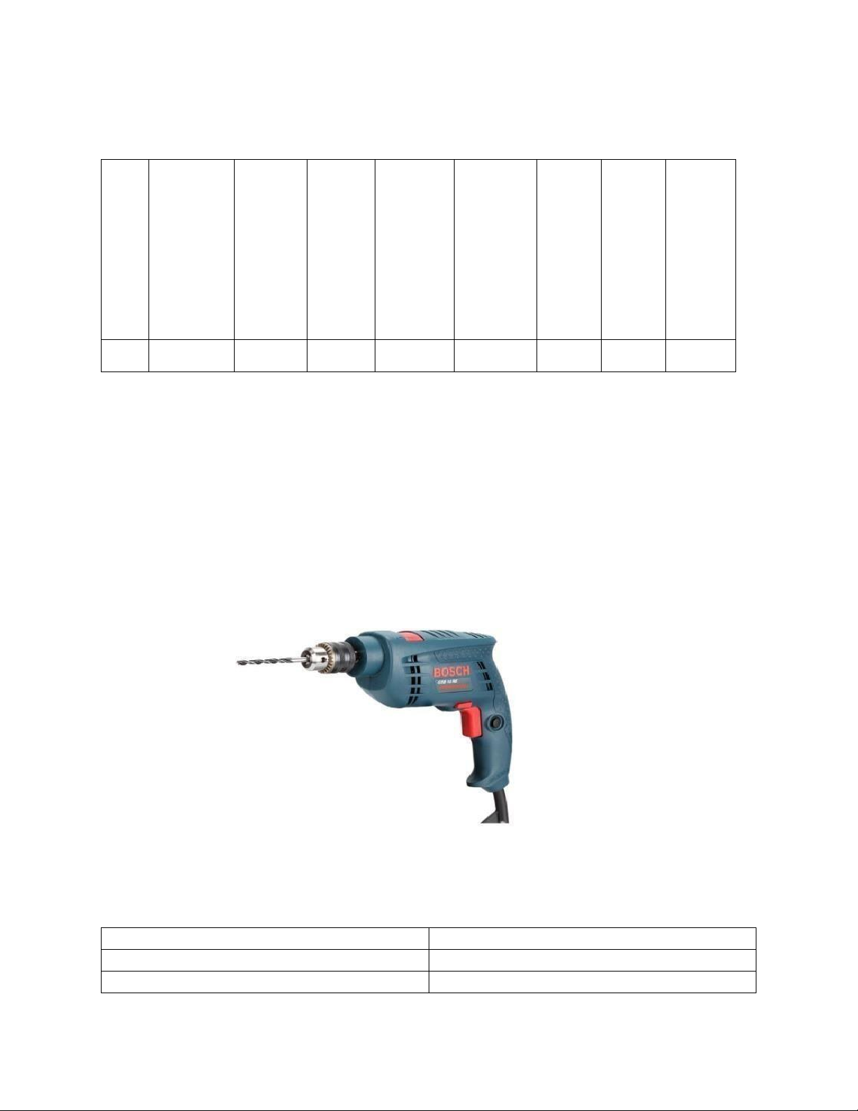 Bảng: Bảng thời gian máy khoan cầm tay làm việc trong ngày