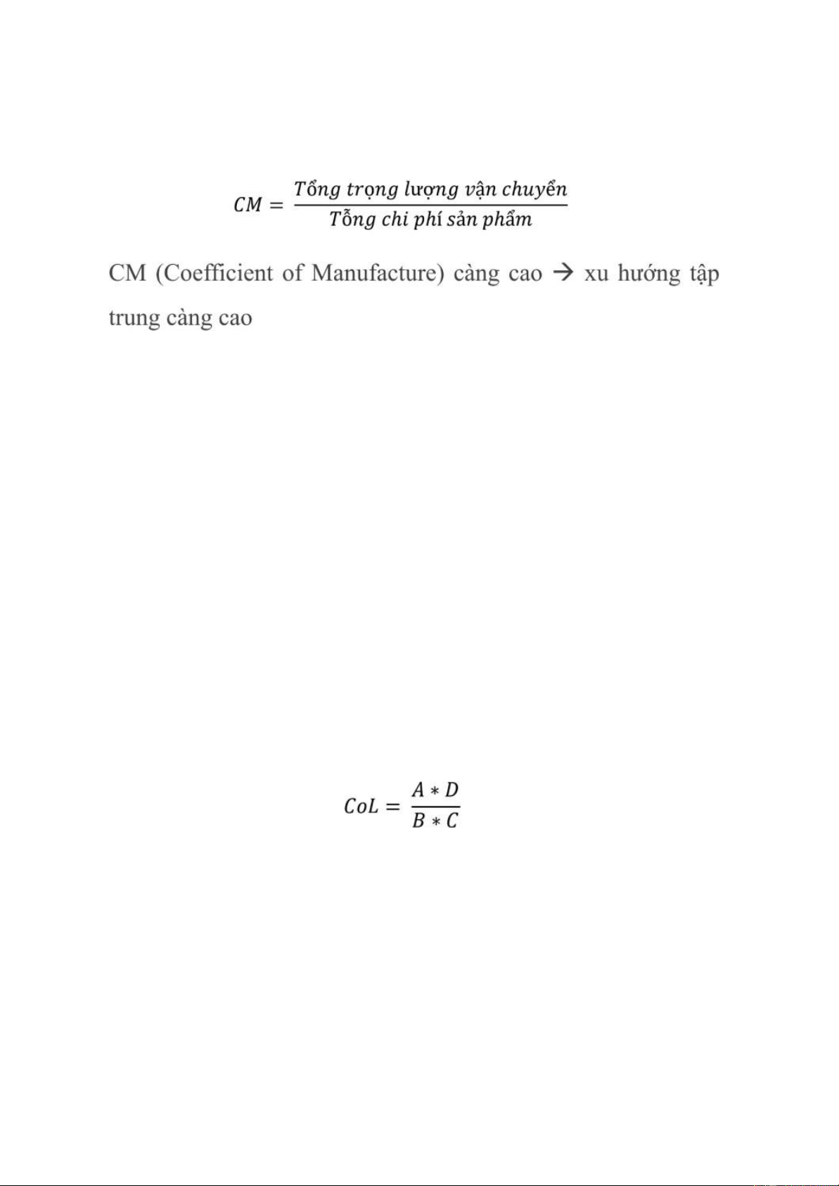 - CoL<1: Ngành đó không tập trung , phân tán hoặc yếu thế tại khu vực đó